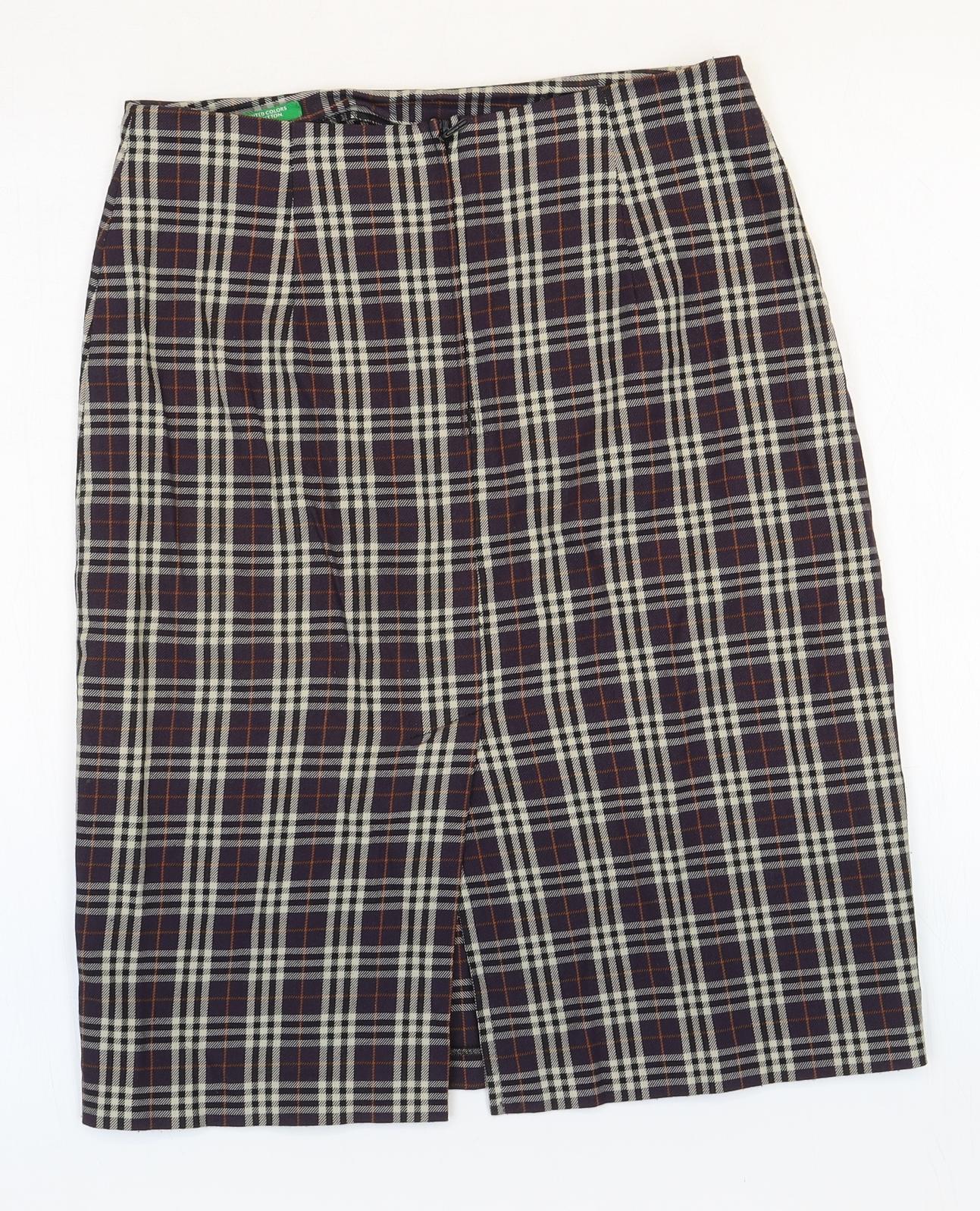 United Colours of Benetton Womens Multicoloured Plaid Viscose Straight & Pencil Skirt Size 12 Zip