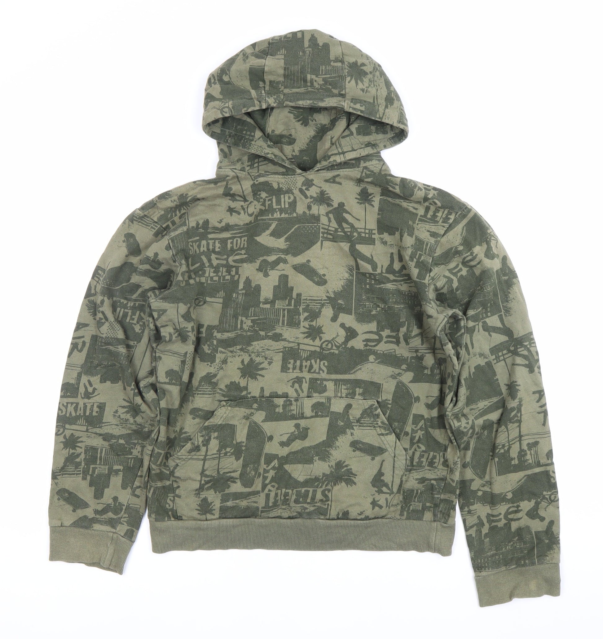 Urban Outlaws Boys Green Pullover Hoodie 13-14Y Skateboard Print Cotton