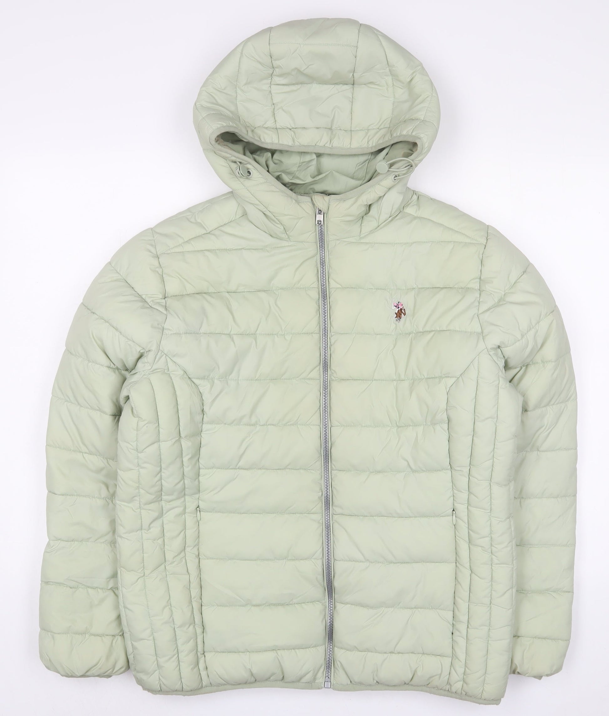 US Polo Assn. Womens Green Puffer Jacket Coat Size 14 Zip
