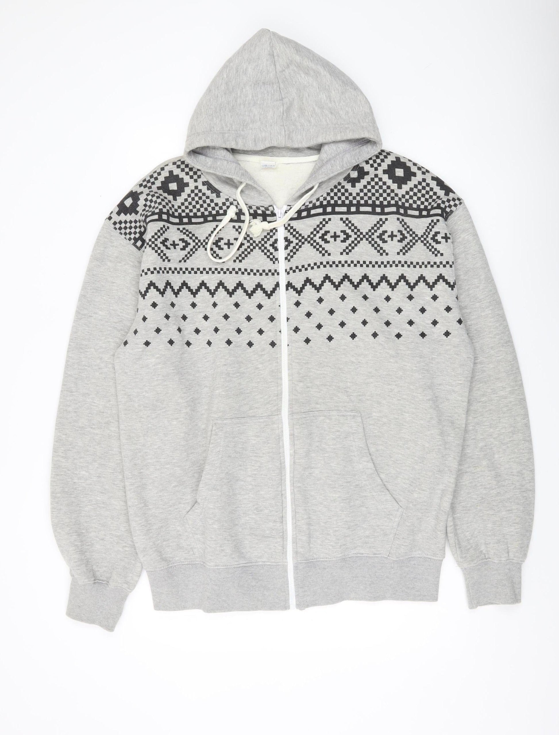 USA Apparel Mens Grey XL Full Zip Hoodie Geometric Print