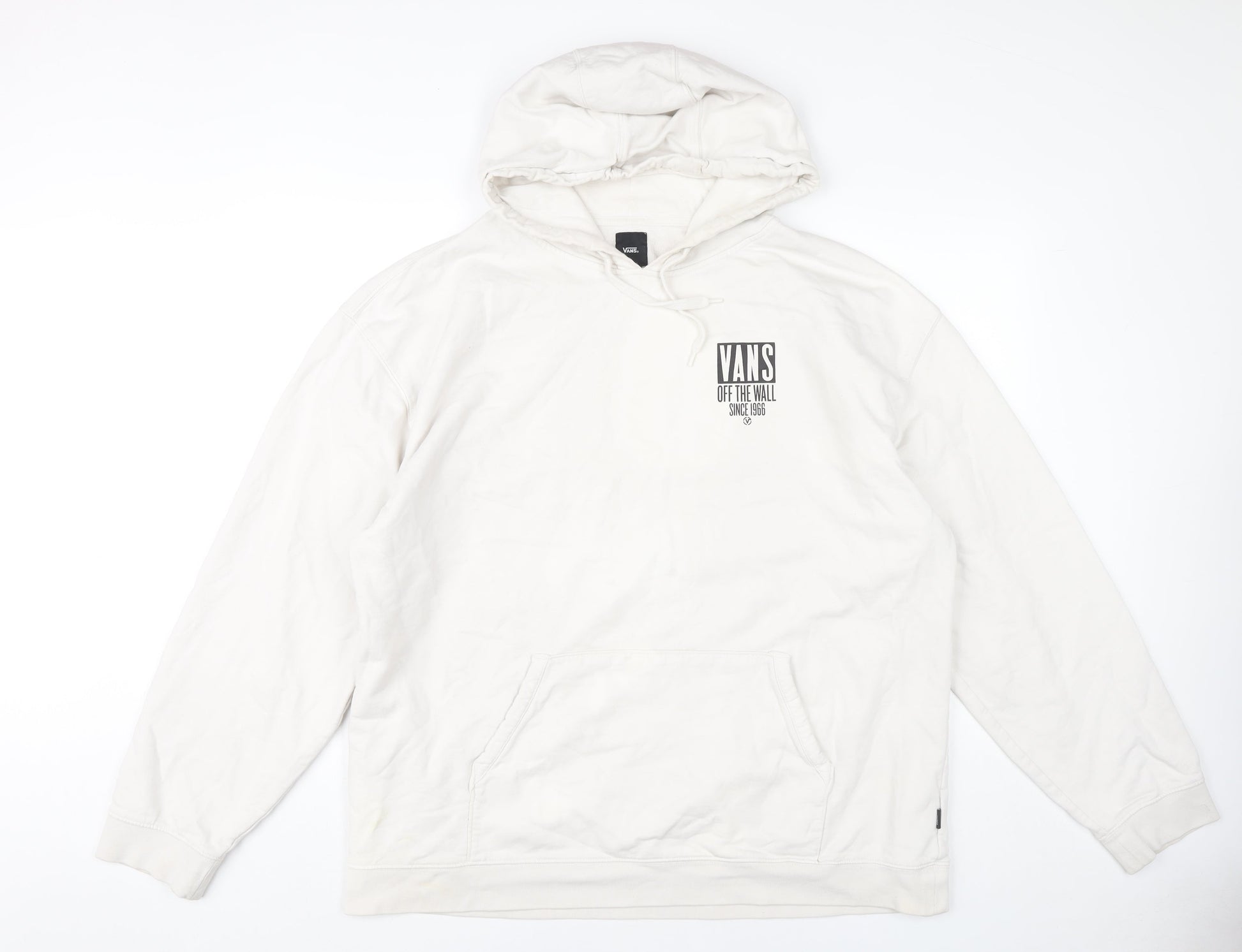 Vans Mens 2XL White Pullover Hoodie Logo Graphic Cotton Skateboarding
