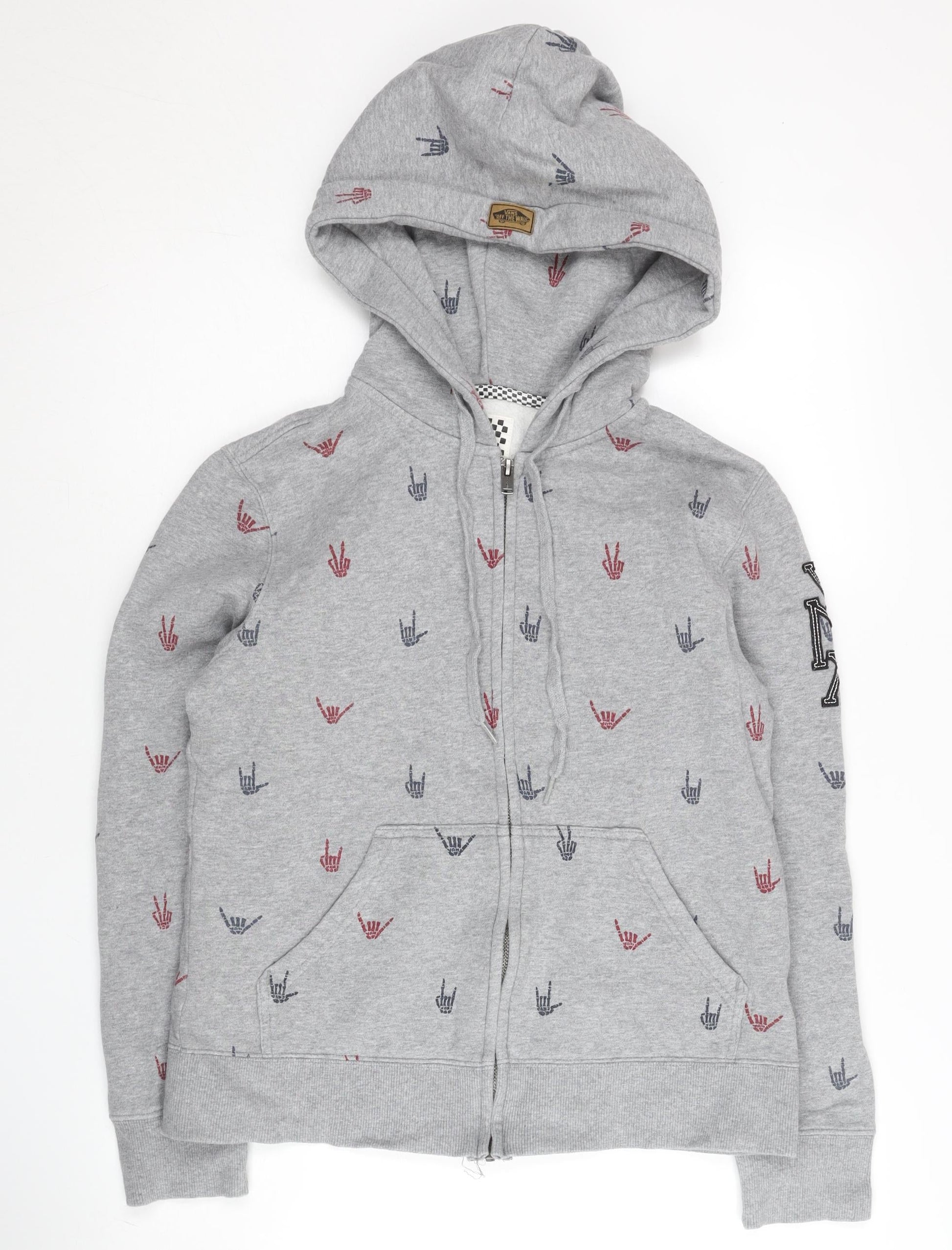 Vans Women’s Grey Hoodie Sweatshirt L Full Zip Cotton Blend Graphic