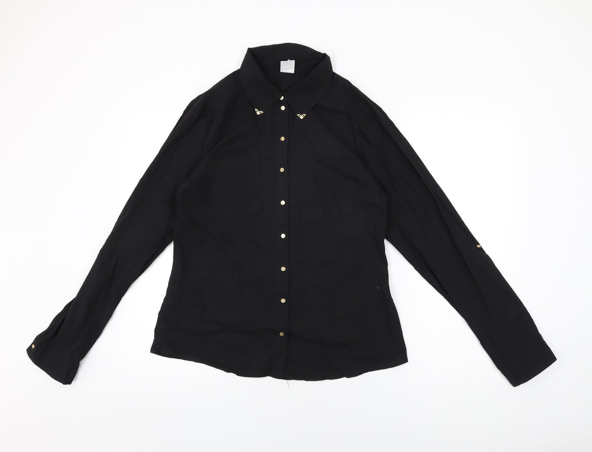 VERO MODA Womens Black Cotton Basic Button-Up Size XL Collared