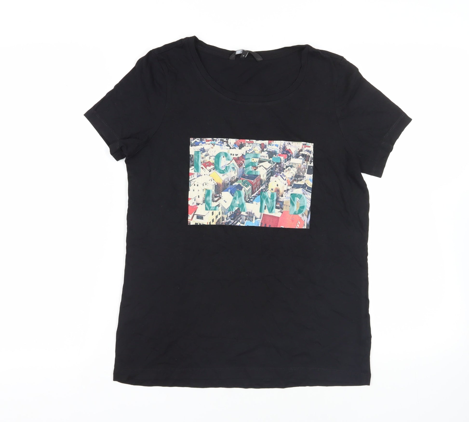 VERO MODA Womens Black Cotton Basic T-Shirt Size M Round Neck - Iceland