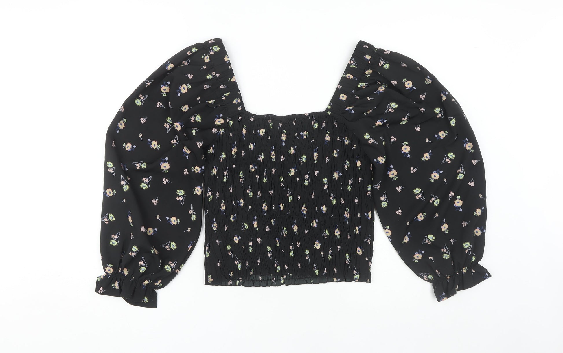 Vero Moda Women's Black Floral Cropped Blouse - Medium