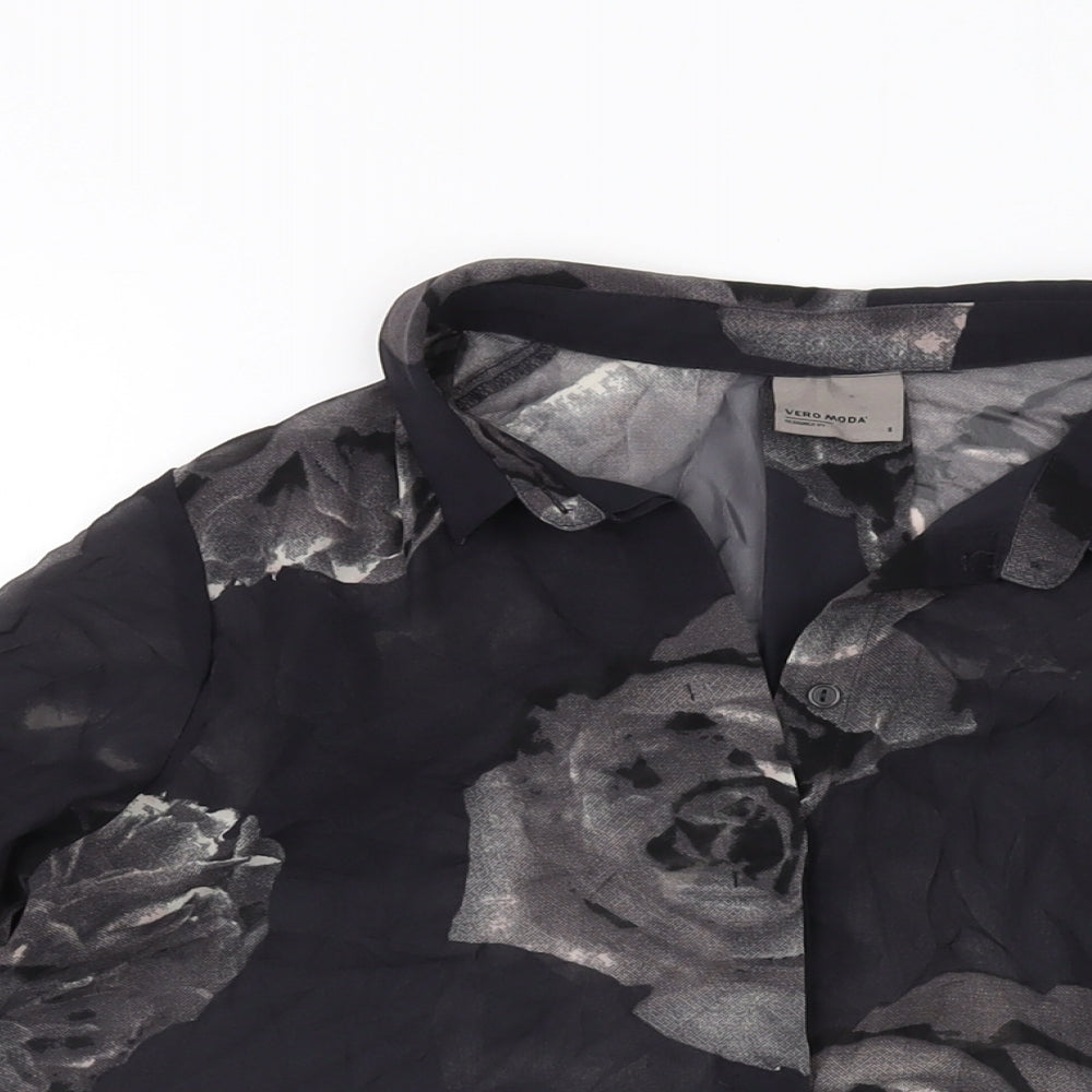 VERO MODA Womens Black Geometric Polyester Basic Button-Up Size S Collared