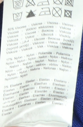 - Material Breakdown: 80% Viscose 17% Nylon 3% Elastane