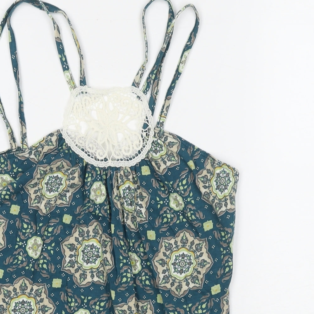 VERO MODA Womens Blue Geometric Cotton Basic Tank Size M Round Neck