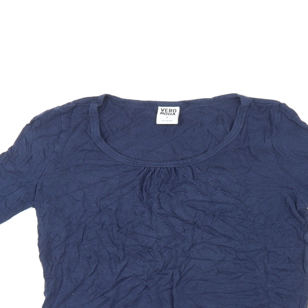 VERO MODA Womens Blue Polyester Basic T-Shirt Size M Round Neck