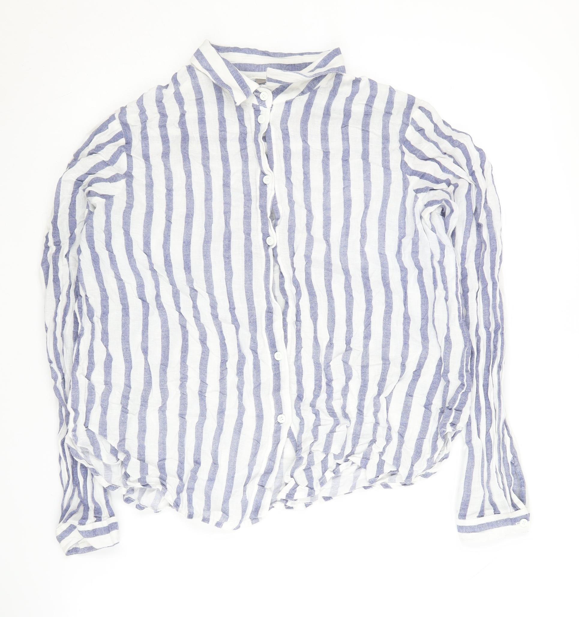 VERO MODA Women's Blue Striped Button-Up Shirt L
