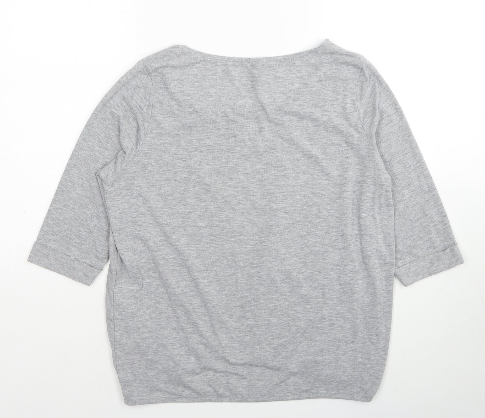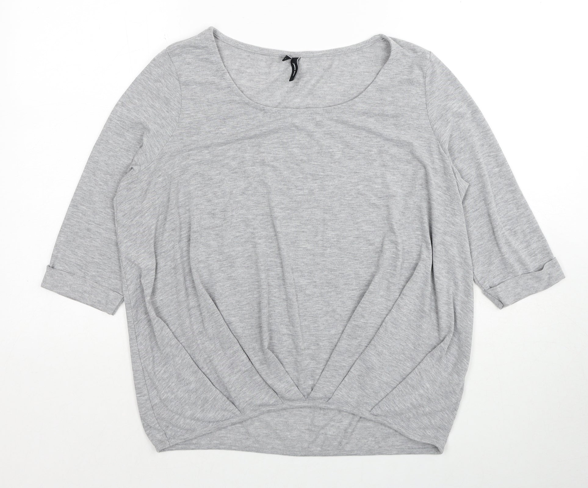 VERO MODA Womens Grey Polyester Basic T-Shirt Size S Scoop Neck