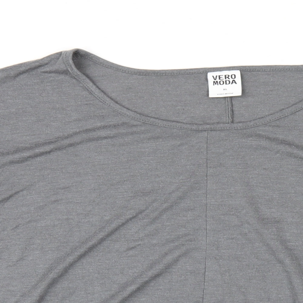 VERO MODA Womens Grey Polyester Basic T-Shirt Size XL Round Neck