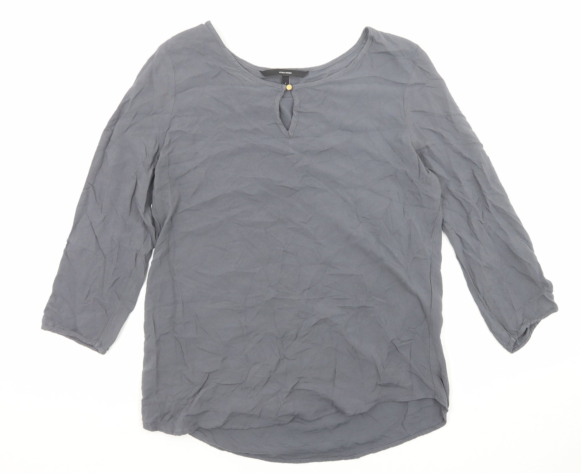 VERO MODA Womens Grey Viscose Basic Blouse Size S Boat Neck