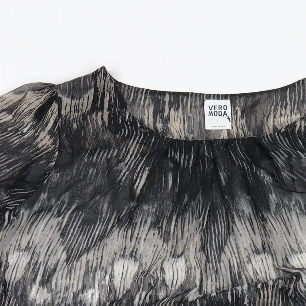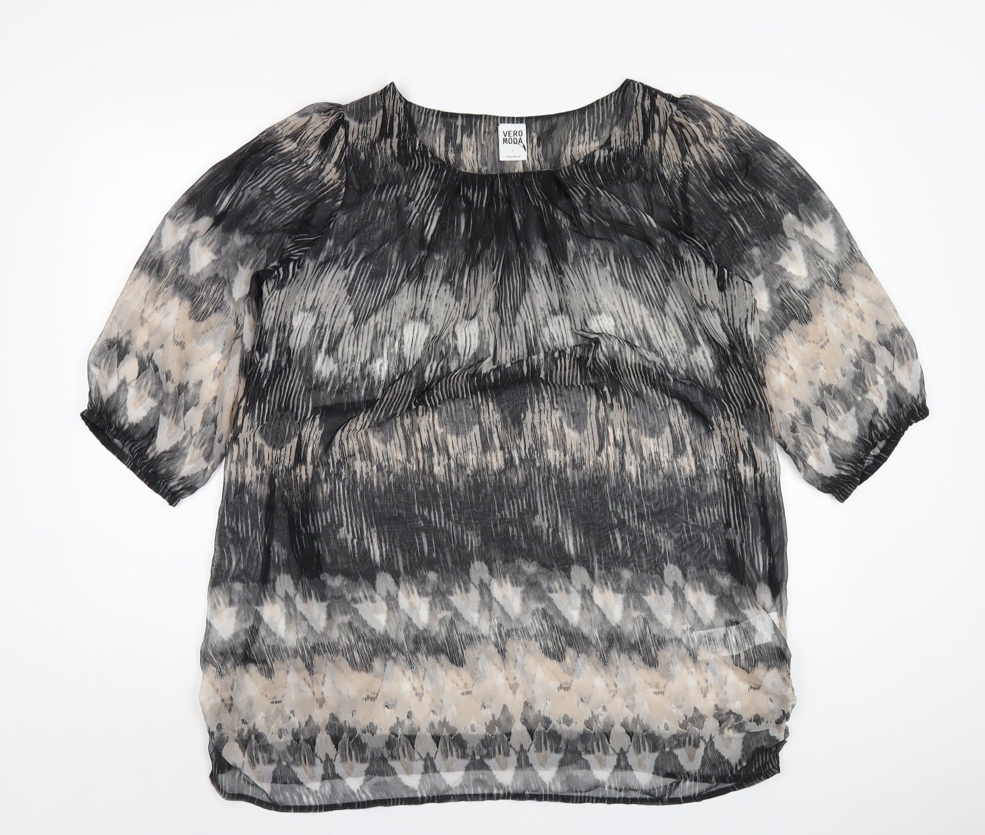 VERO MODA Womens Multicoloured Geometric Polyester Basic T-Shirt Size L Round Neck