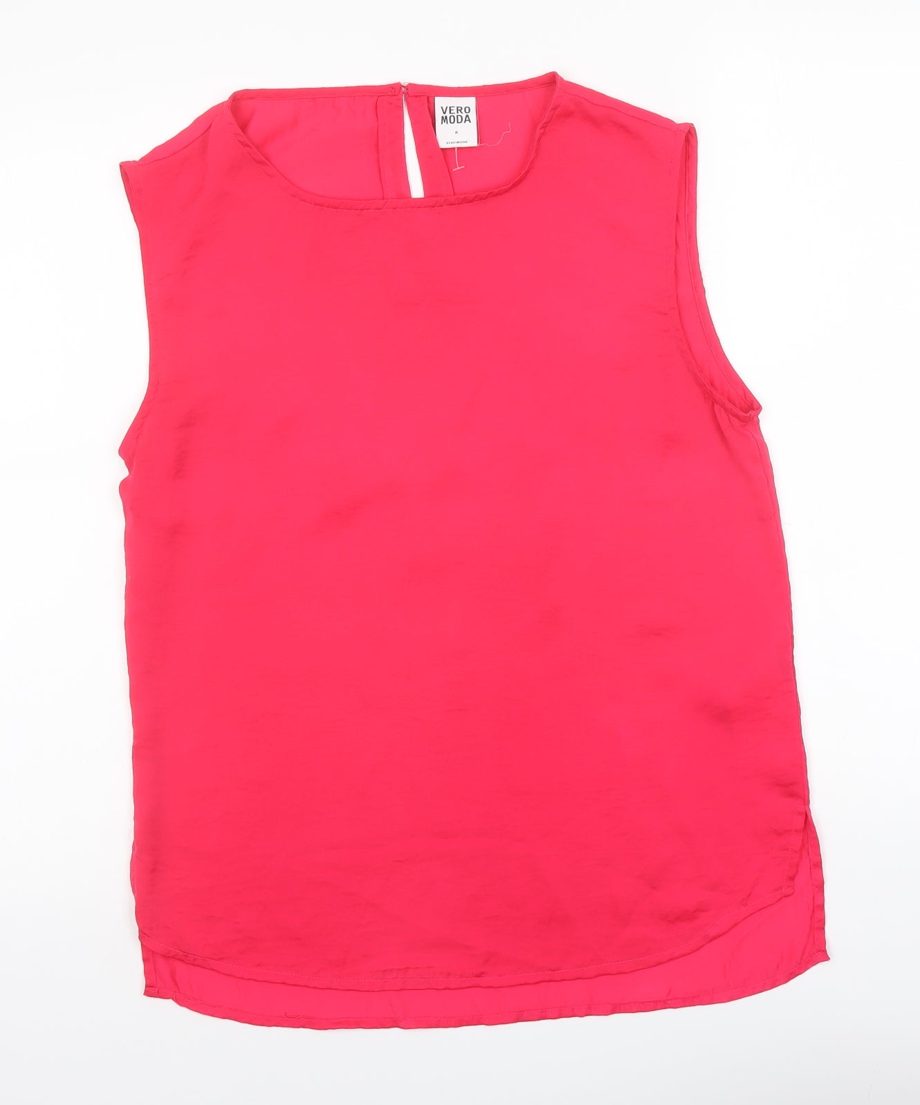 VERO MODA Womens Pink Polyester Basic Tank Size M Round Neck