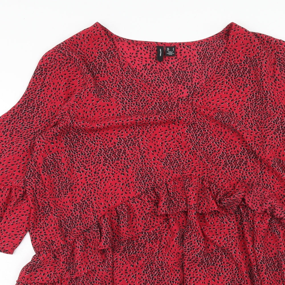 VERO MODA Womens Red Geometric Polyester A-Line Size S V-Neck Pullover