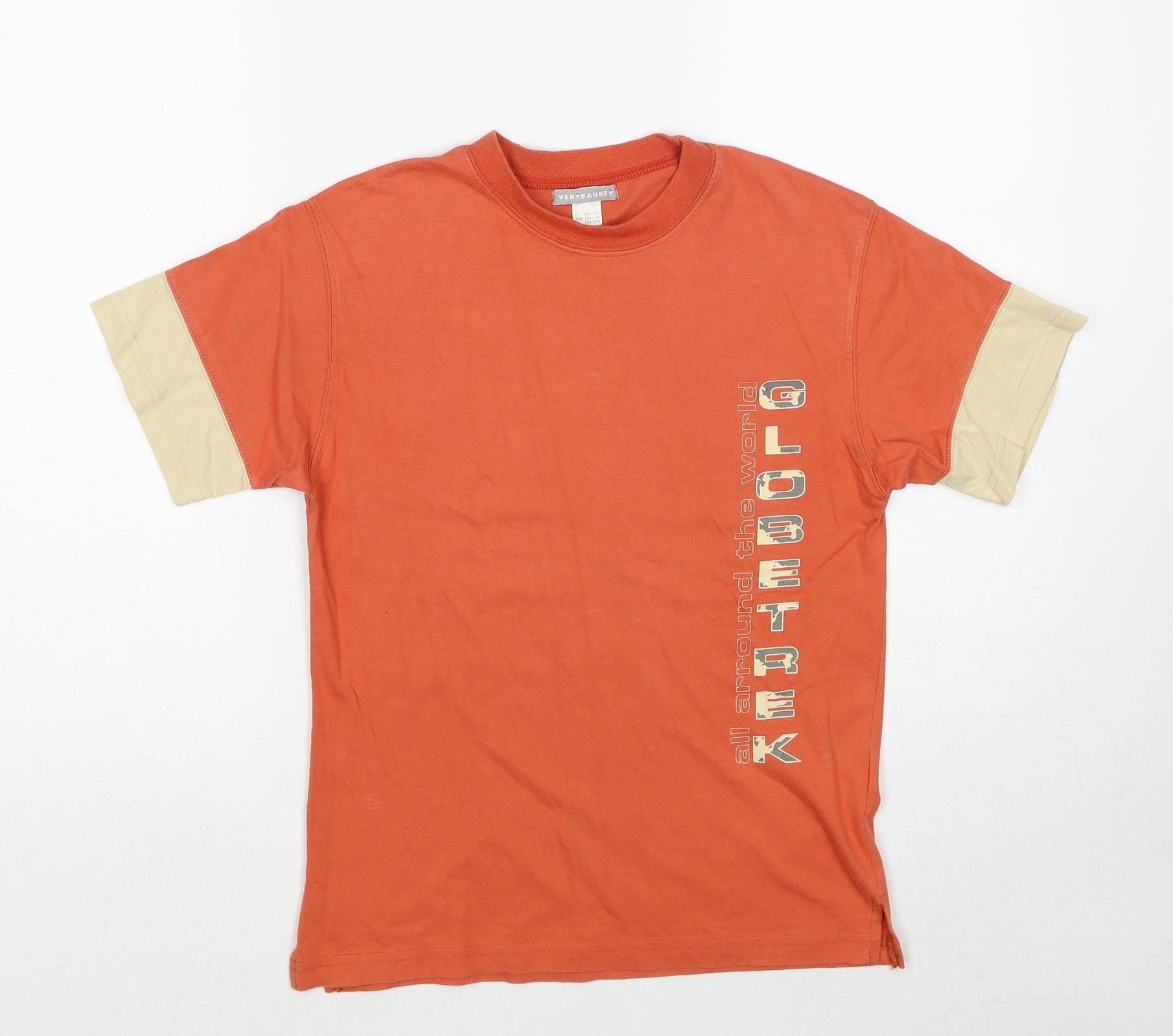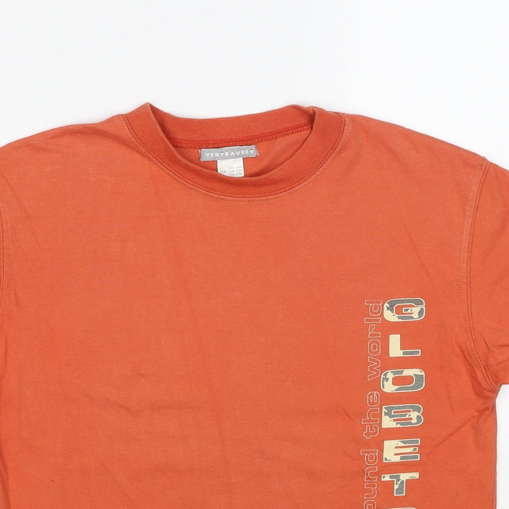Vertbaudet Boys Orange Cotton Pullover T-Shirt Size 10 Years Crew Neck Pullover