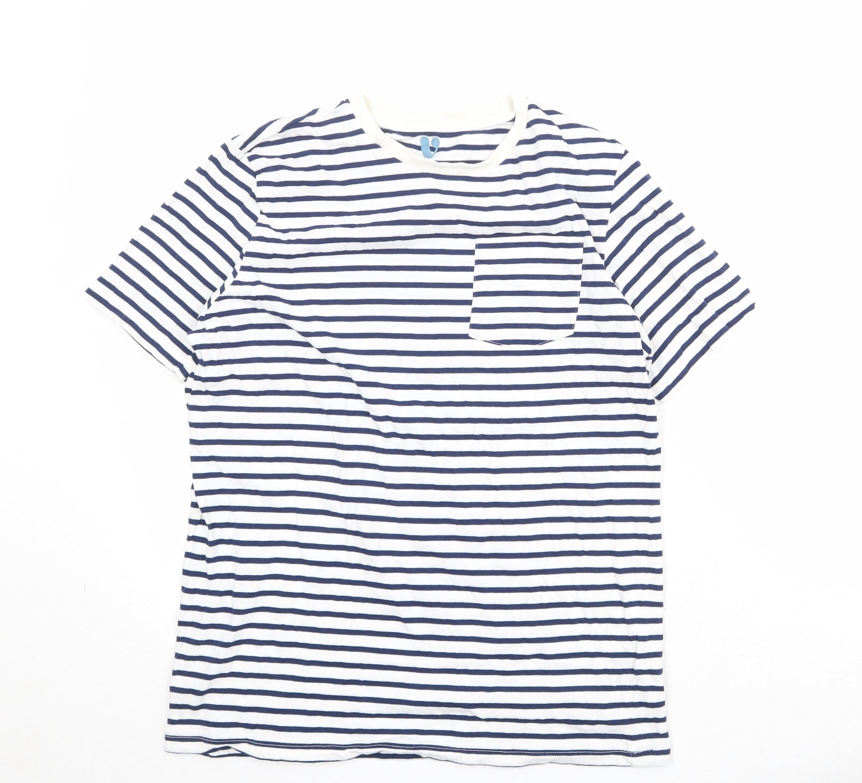 Very Boys Blue Striped 100% Cotton Pullover T-Shirt Size 14 Years Crew Neck Pullover