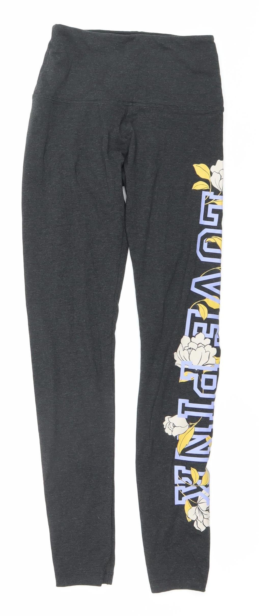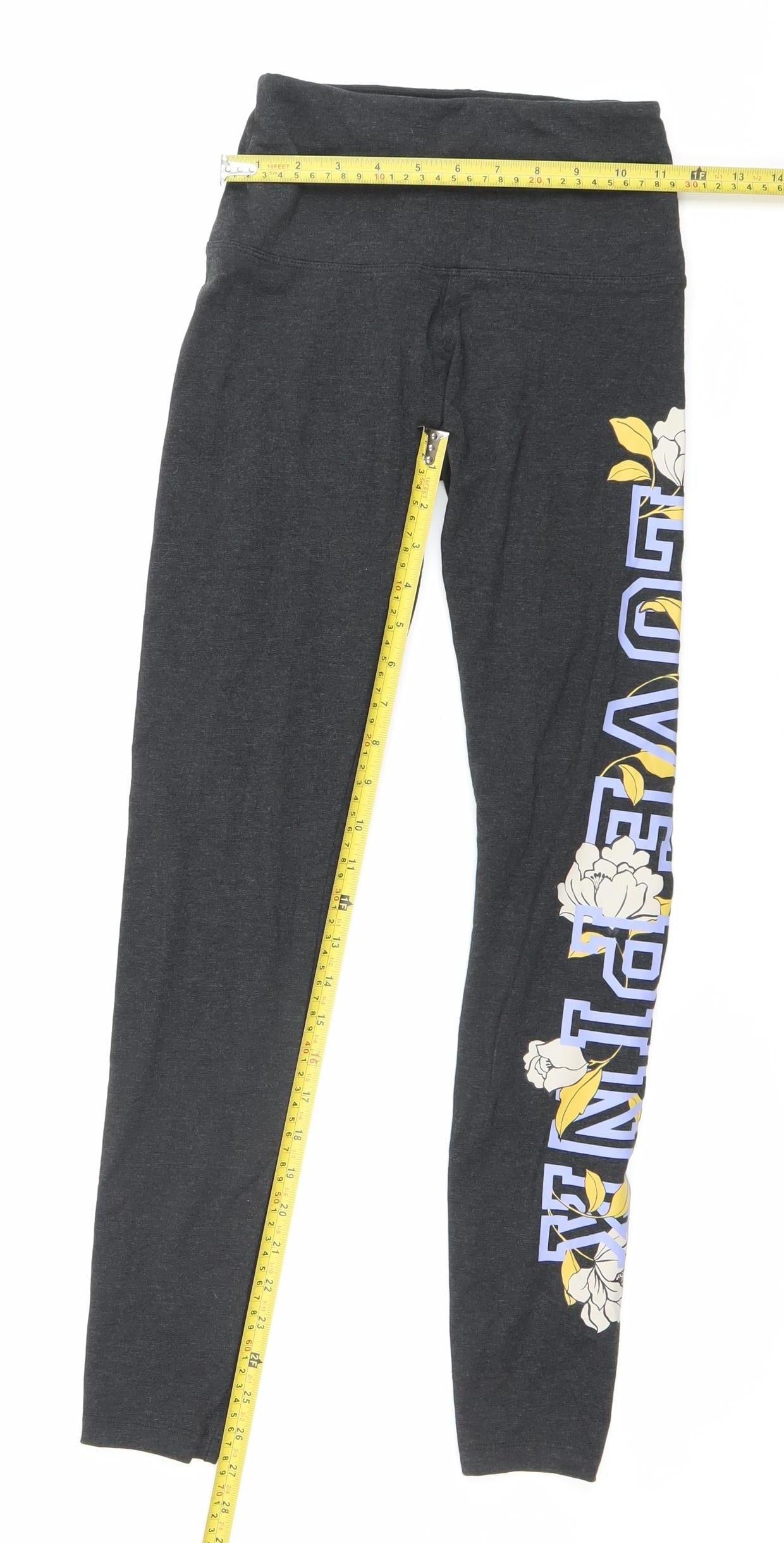 Victoria's Secret PINK Womens Black XS Floral Logo Leggings Activewear