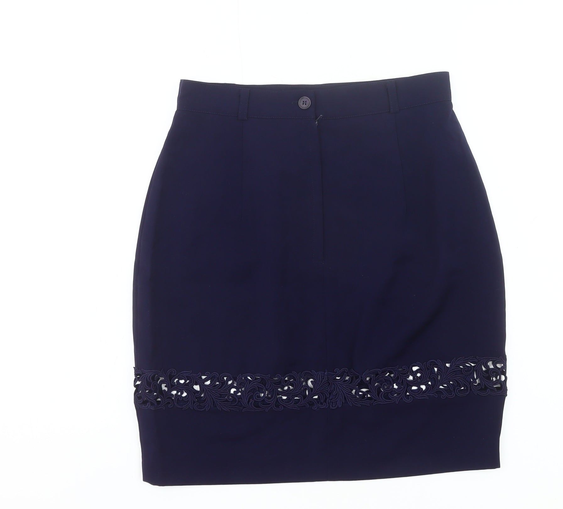 Wallis Women’s Blue Size 12 Pencil Skirt Knee Length Embroidered Workwear