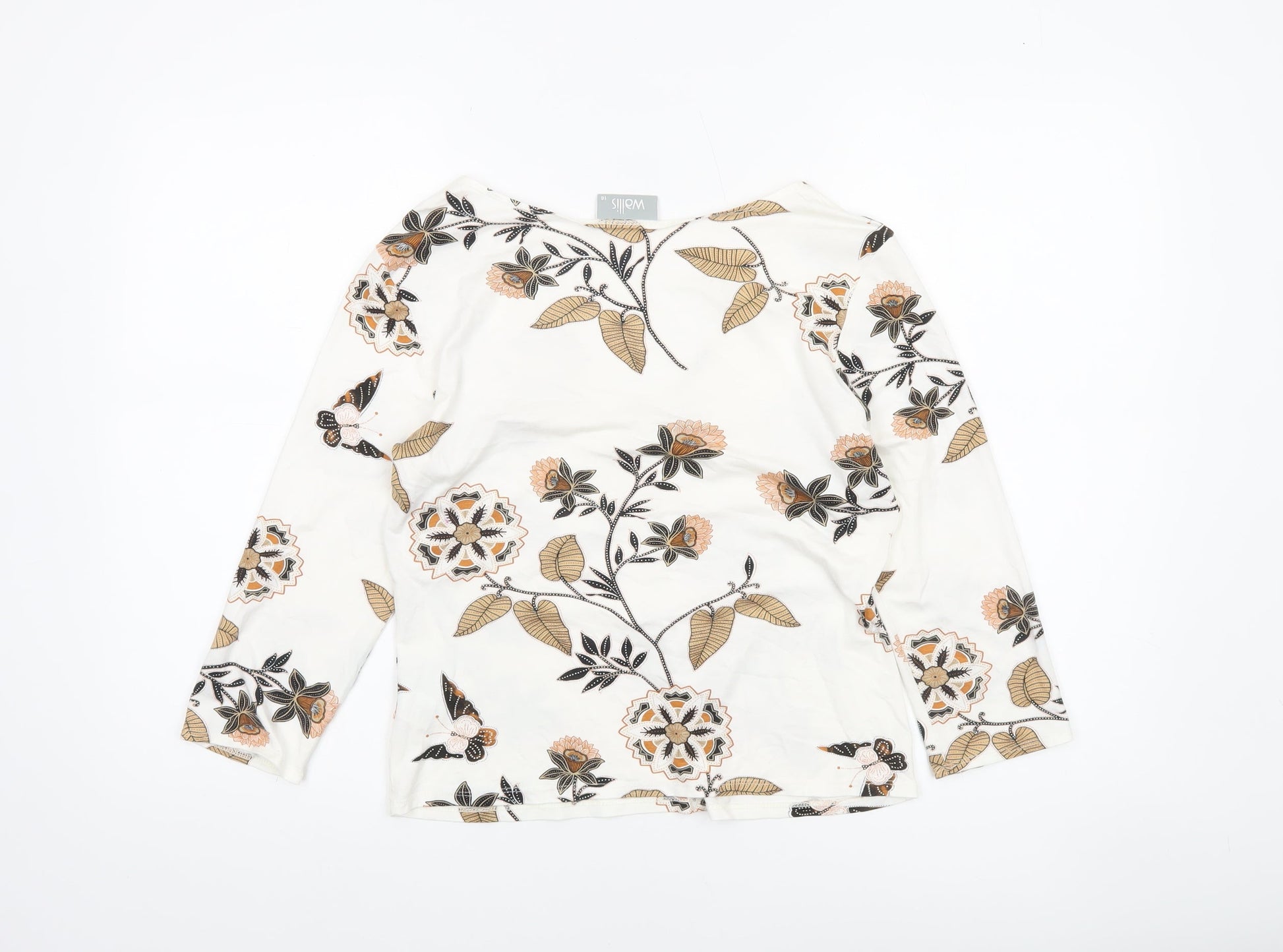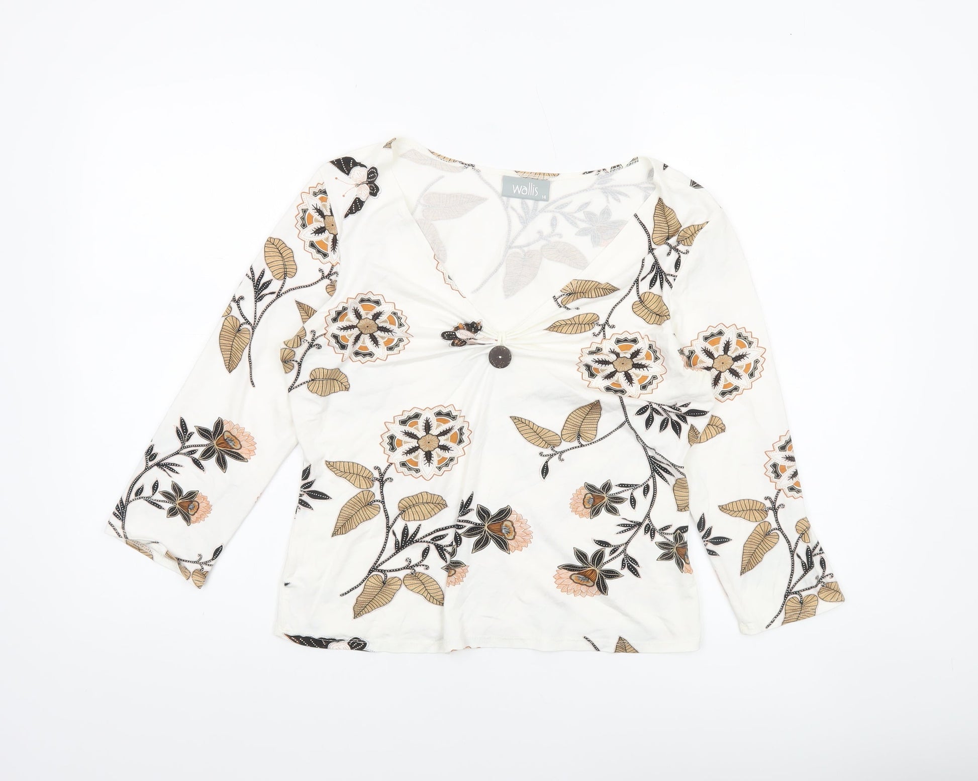 Wallis Women's Ivory Floral V-Neck Jersey Jumper Size 14