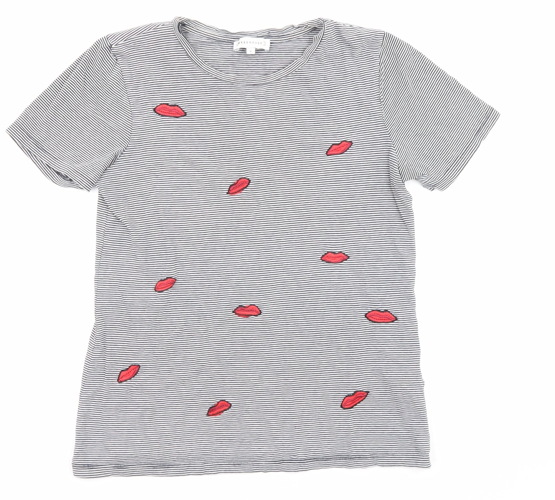 Warehouse Womens Black Striped Cotton Jersey T-Shirt Size 8 Round Neck - Lips