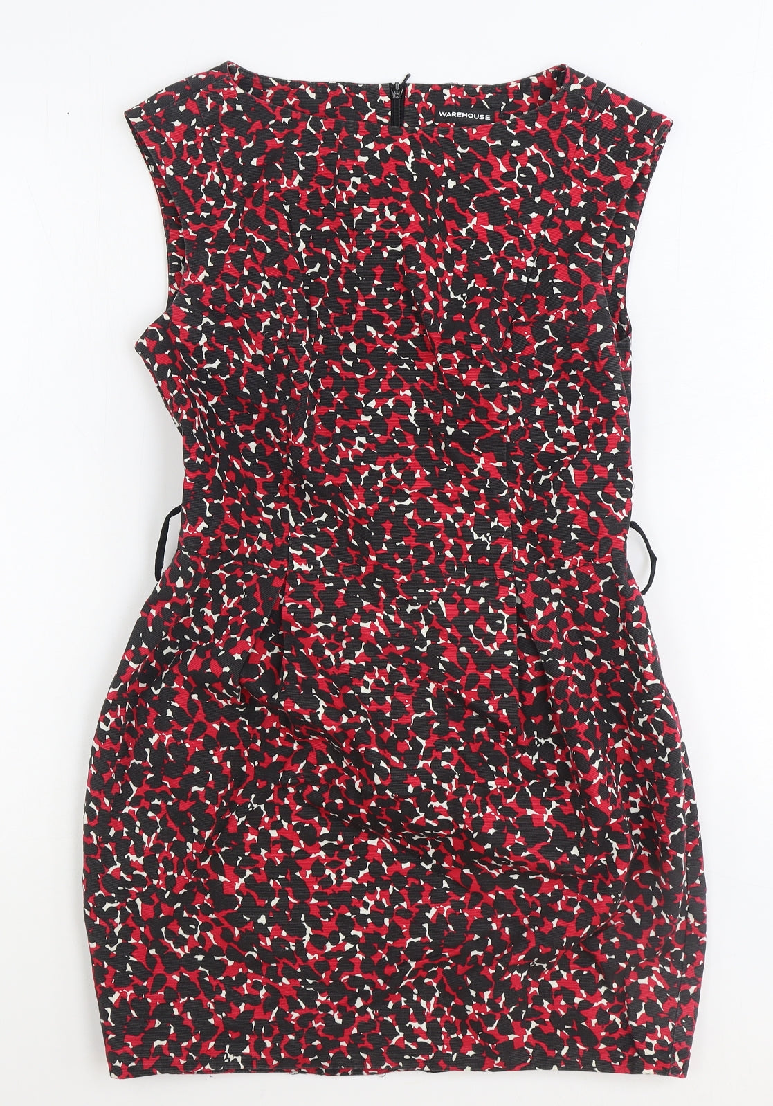 Warehouse Womens Red Geometric 100% Cotton Shift Size 10 Round Neck Zip