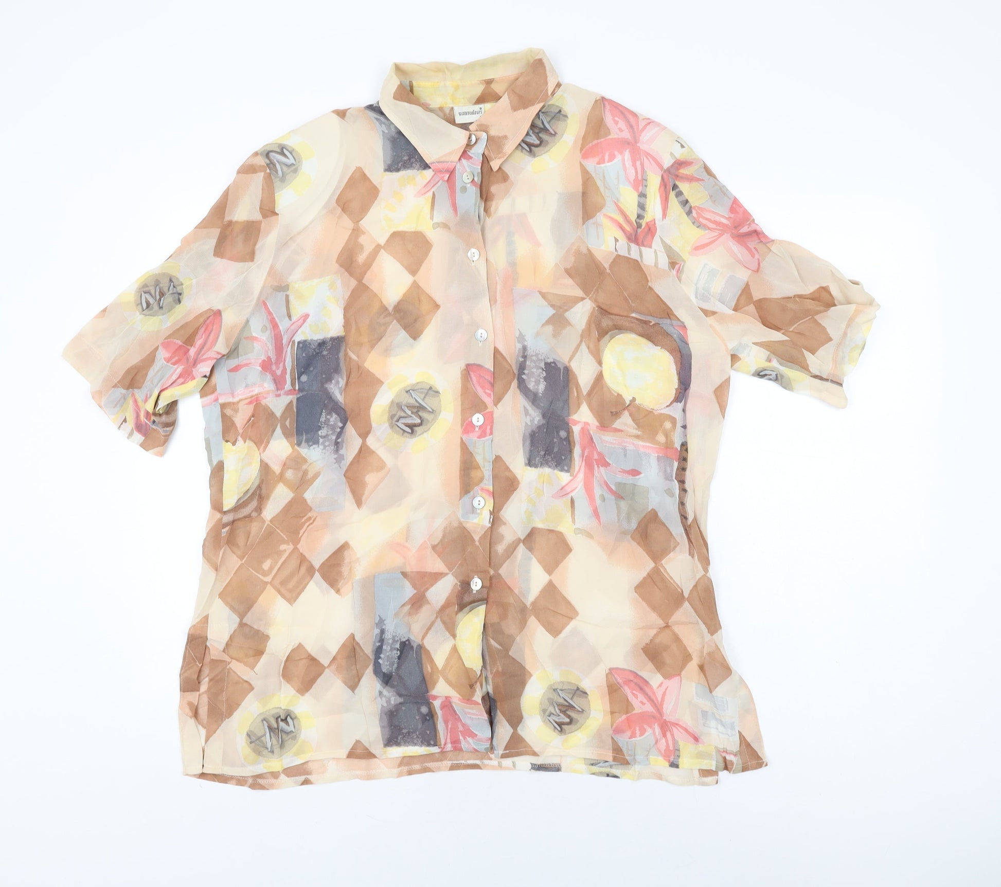 Watercolours Womens Multicoloured Geometric Viscose Basic Button-Up Size 16 Collared