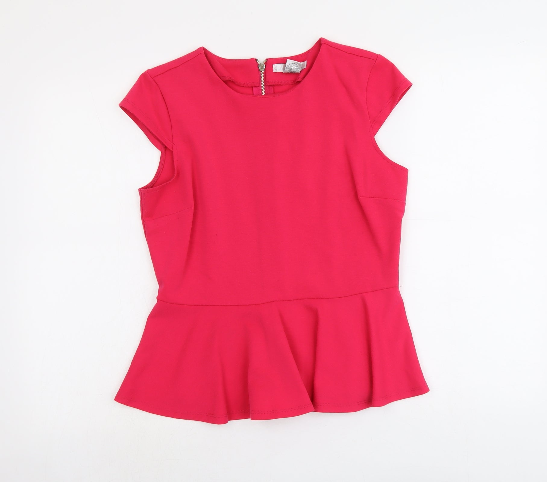 WD.NY Womens Pink Polyester Basic Blouse Size M Boat Neck - Peplum
