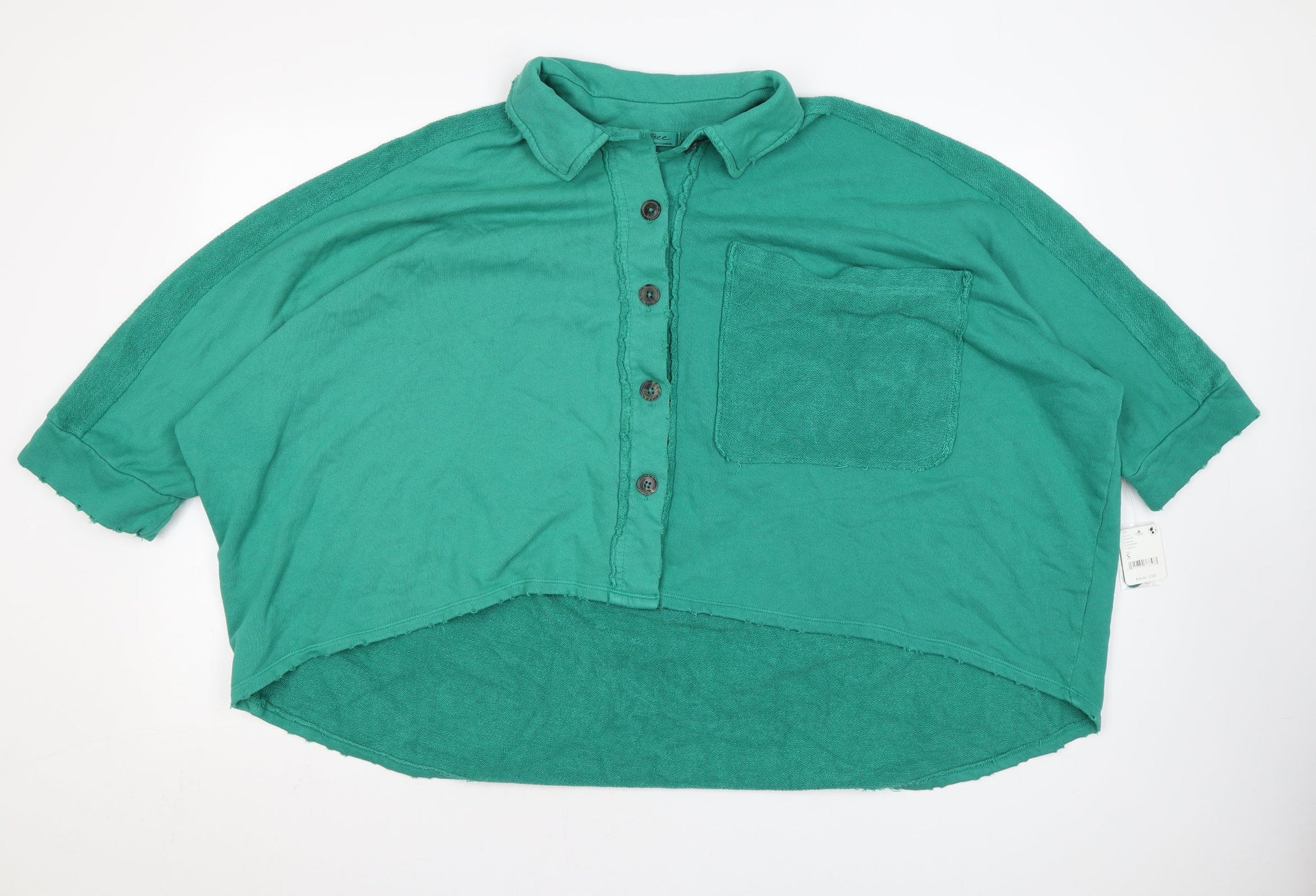 We The Free Womens Green Cotton Basic Button-Up Size S Collared