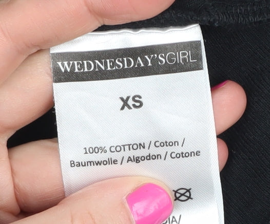 Wednesday’s Girl XS Black Cropped Blouse - Women's, Long Sleeve