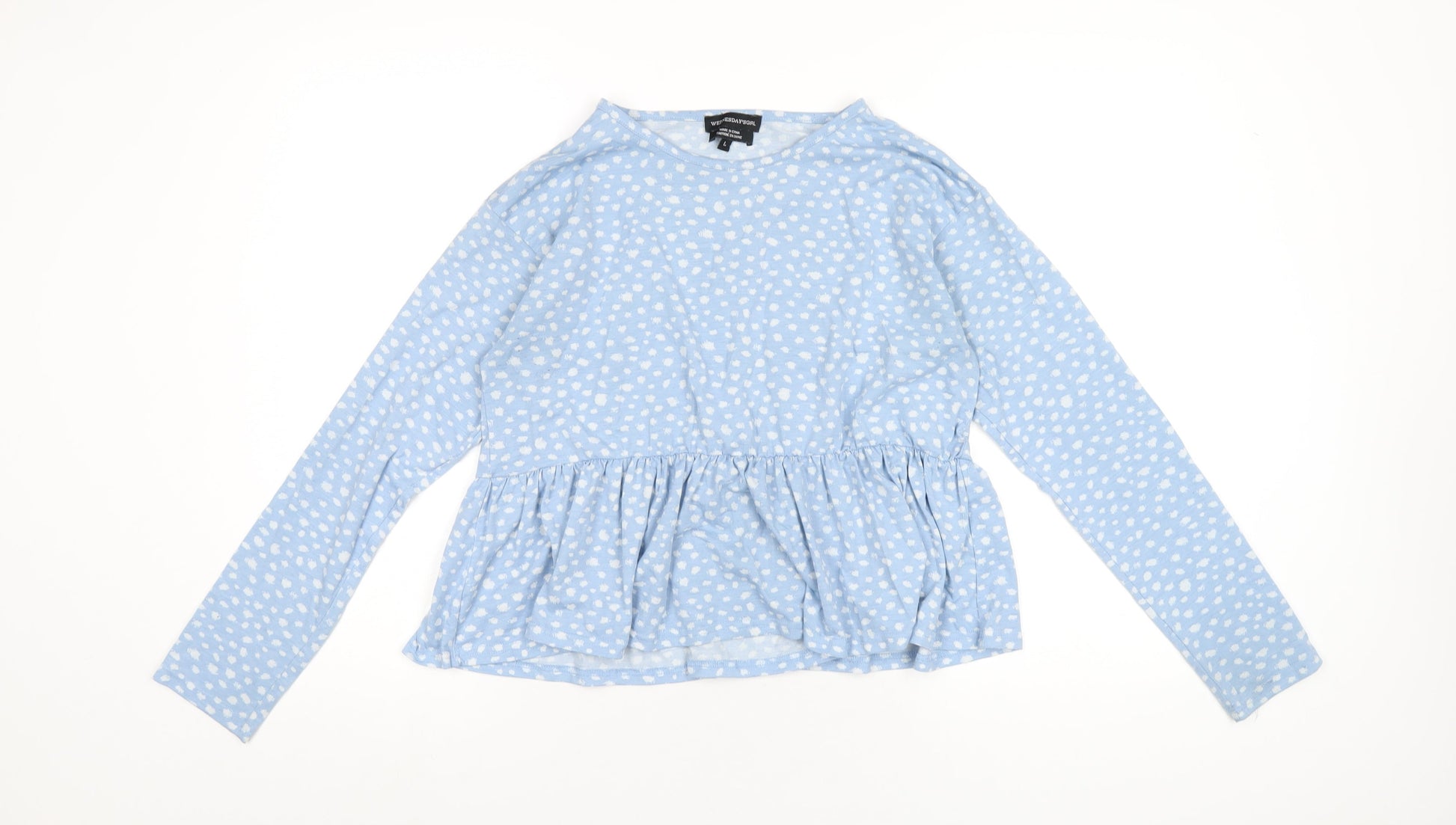 Wednesday's Girl Womens Blue Polka Dot Polyester Basic T-Shirt Size L Round Neck