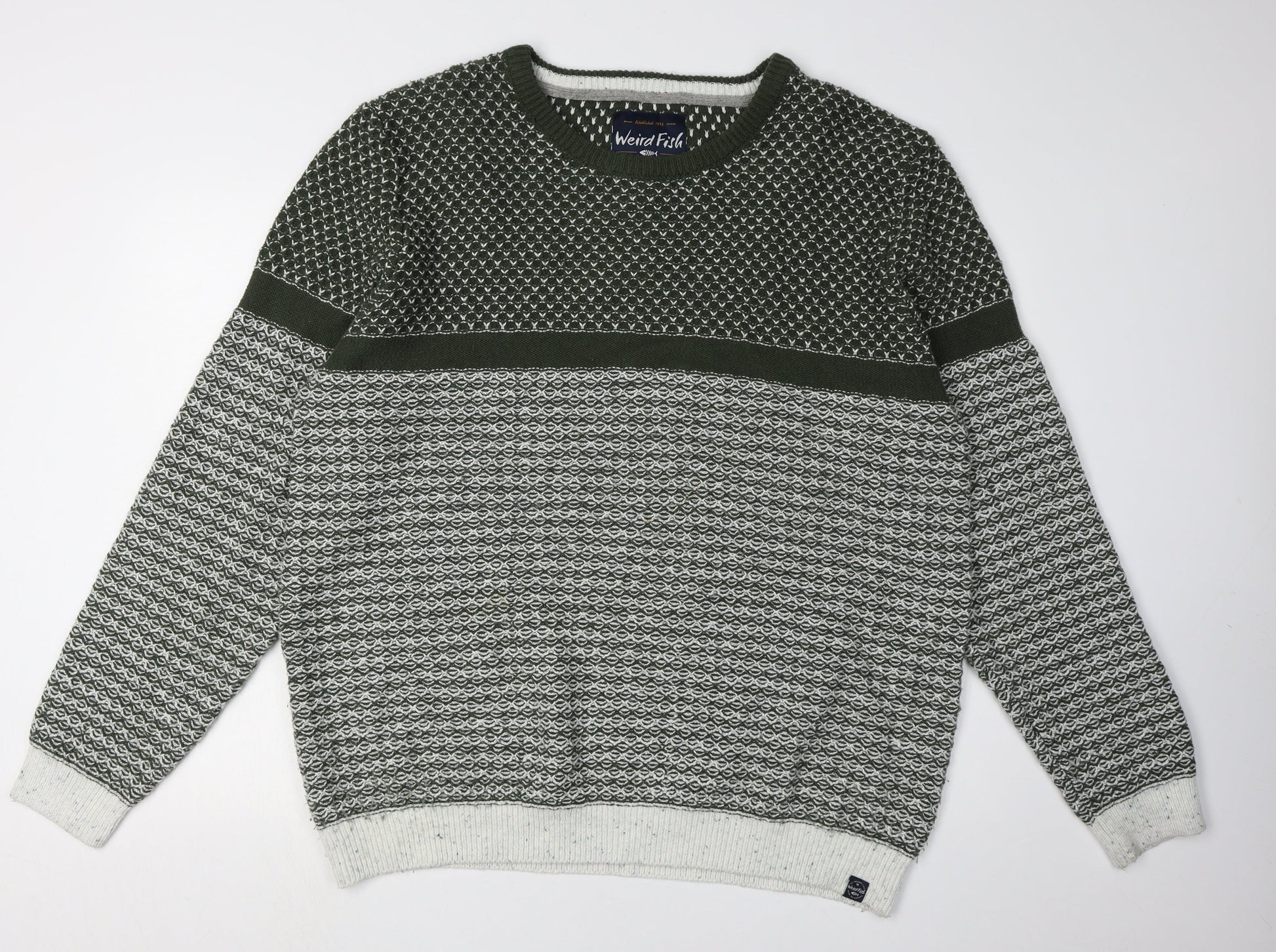 Weird Fish Men's Green Pullover Jumper Size 2XL