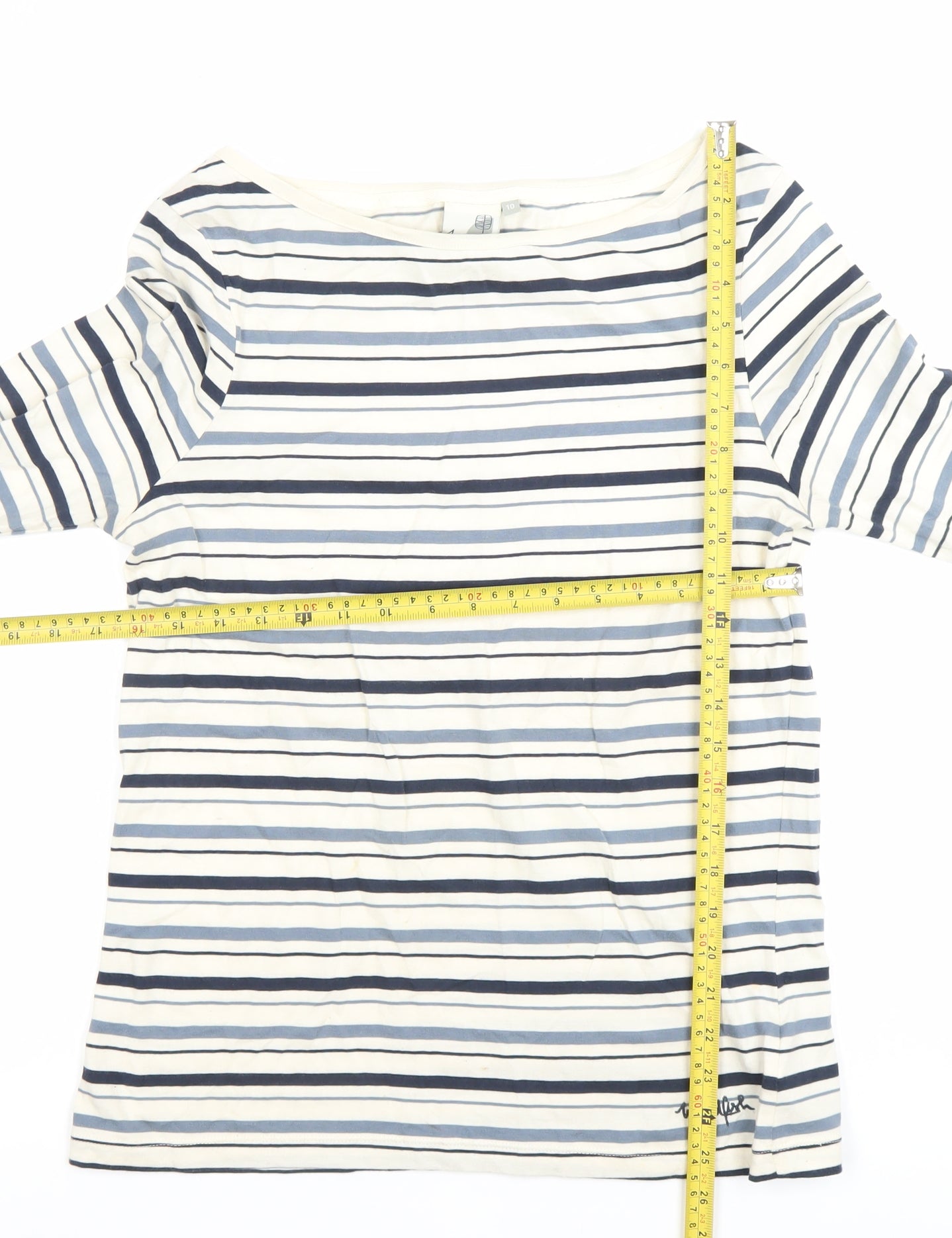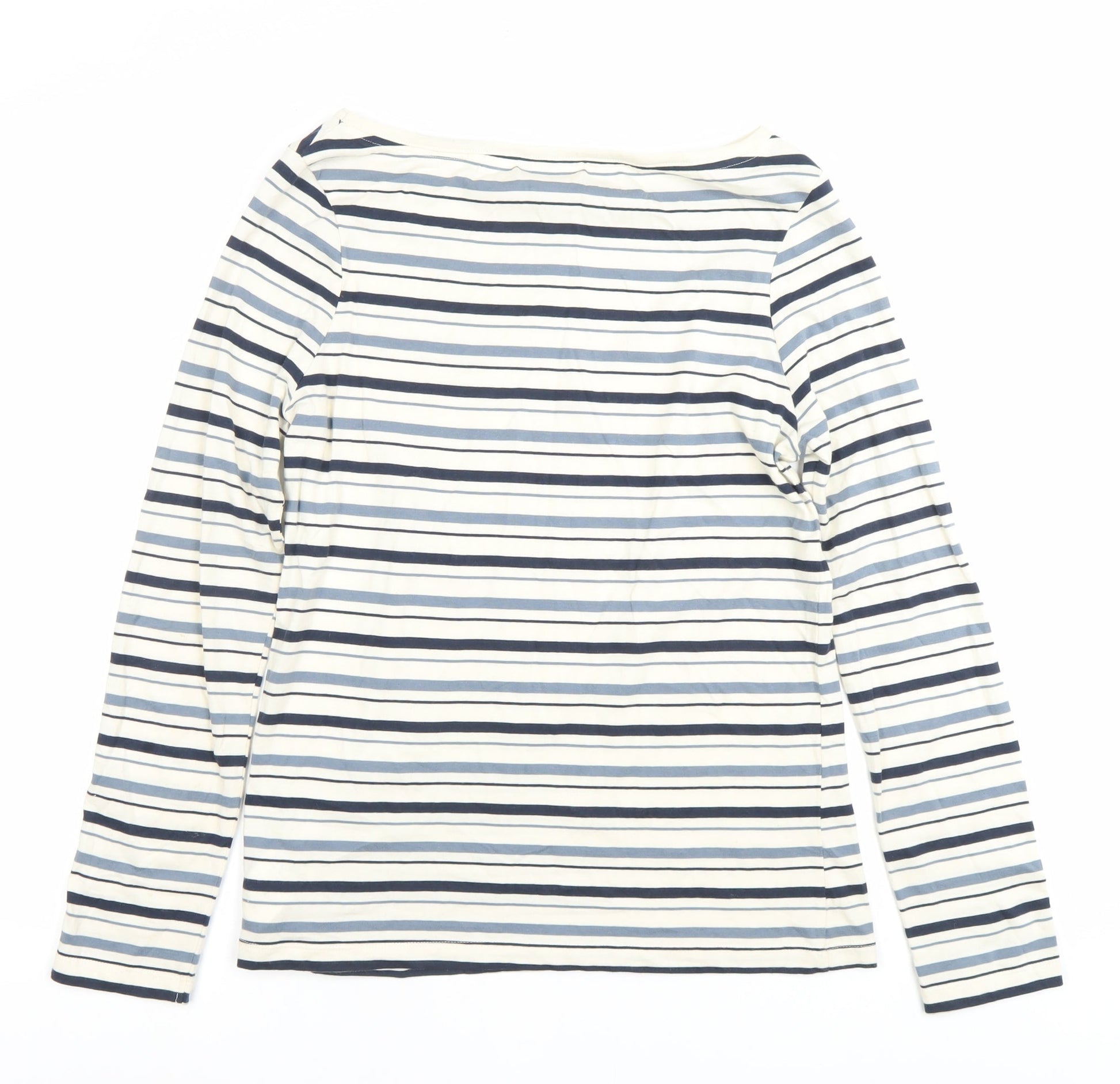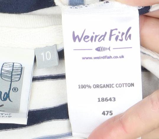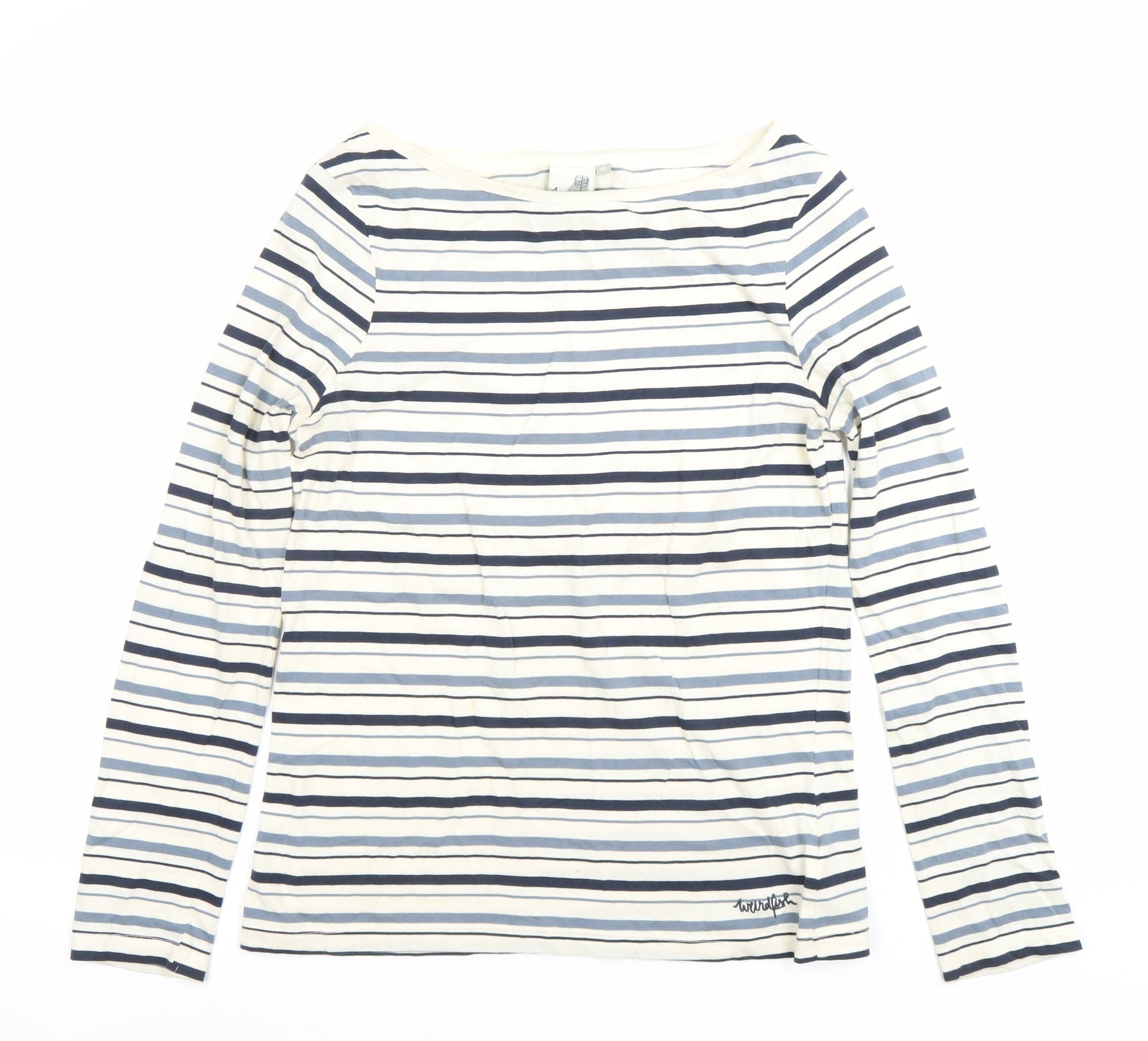 Weird Fish Women’s Blue Striped Organic Cotton Boat Neck Top Size 10