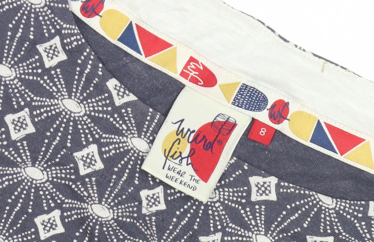 Weird Fish Women's Blue Geometric T-Shirt Size 8