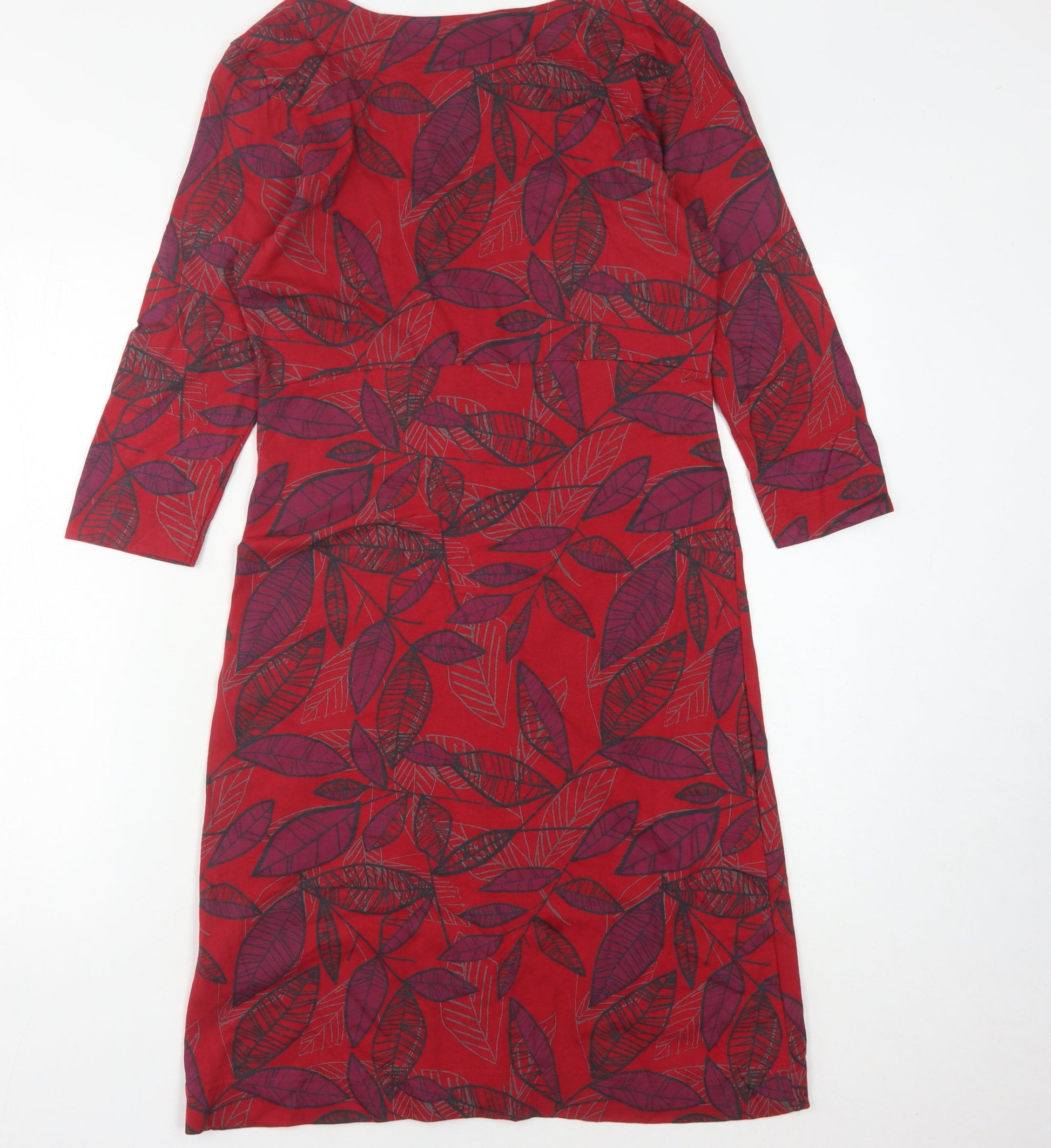 Weird Fish Women's Red Floral Dress Size 6 Boat Neck