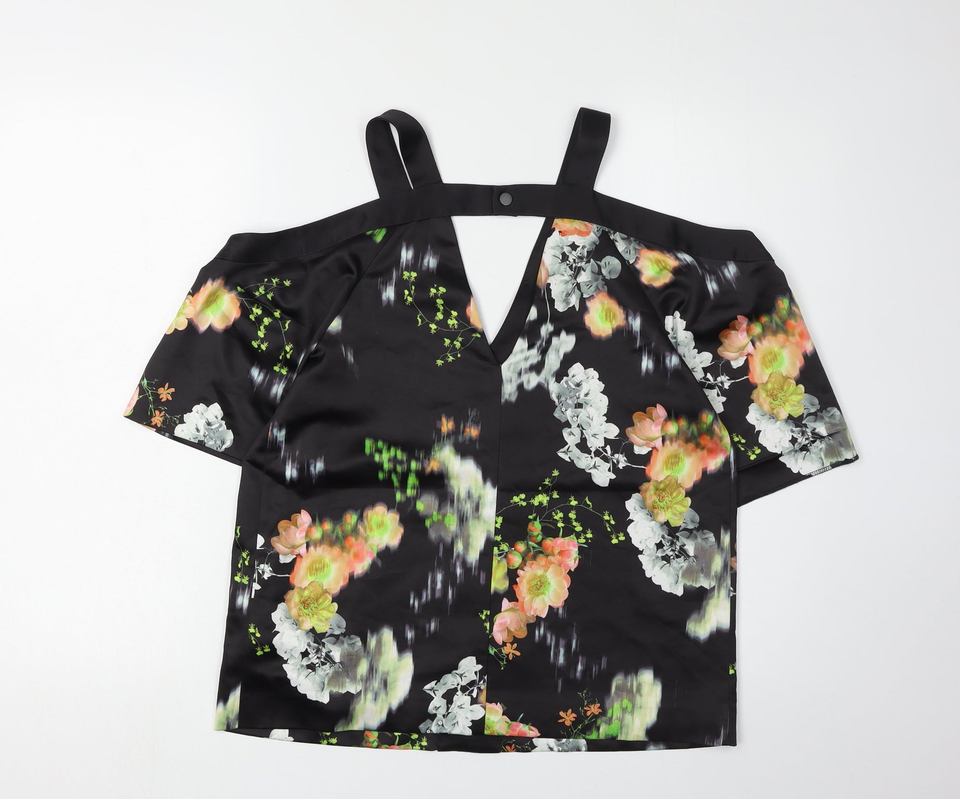 Whistles Women's Black Floral Blouse UK 10 V-Neck
