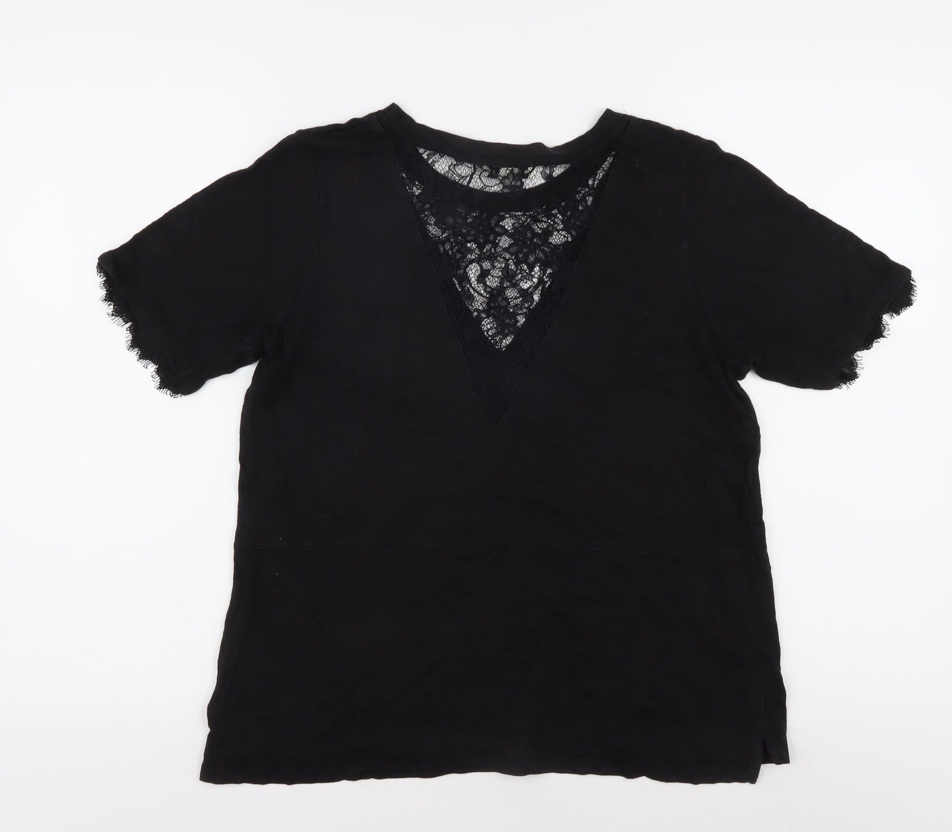 Whistles Women's Black Lace V-Neck T-Shirt L