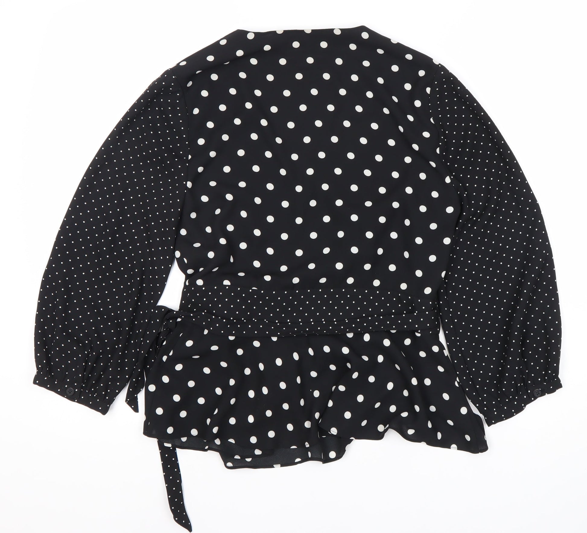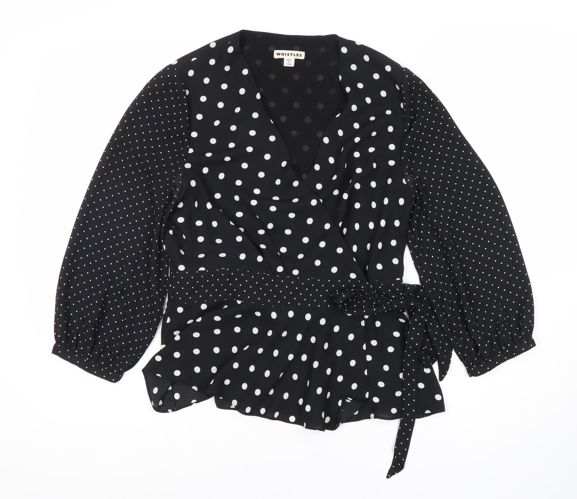 Whistles Women's Black Polka Dot Wrap Blouse Size 10
