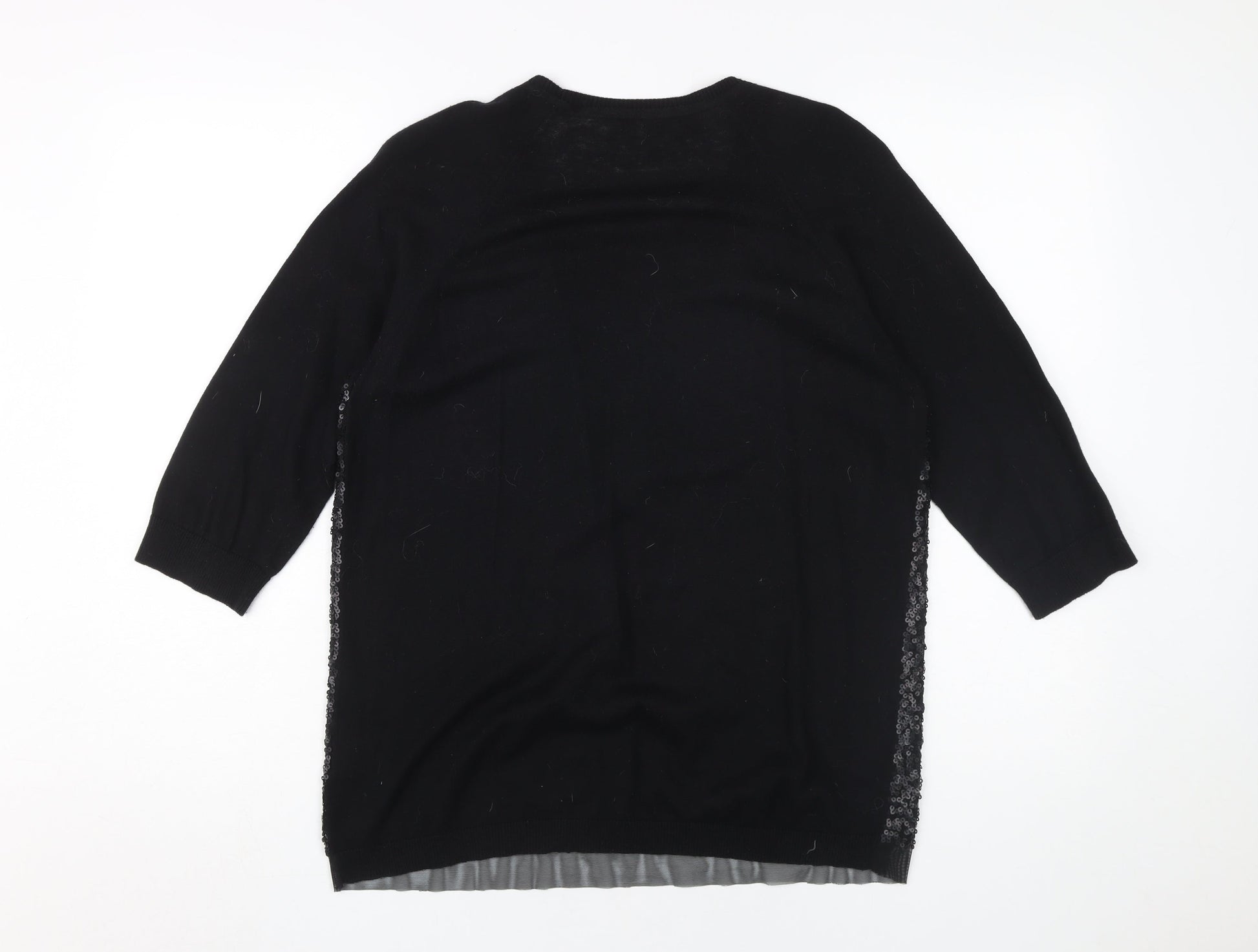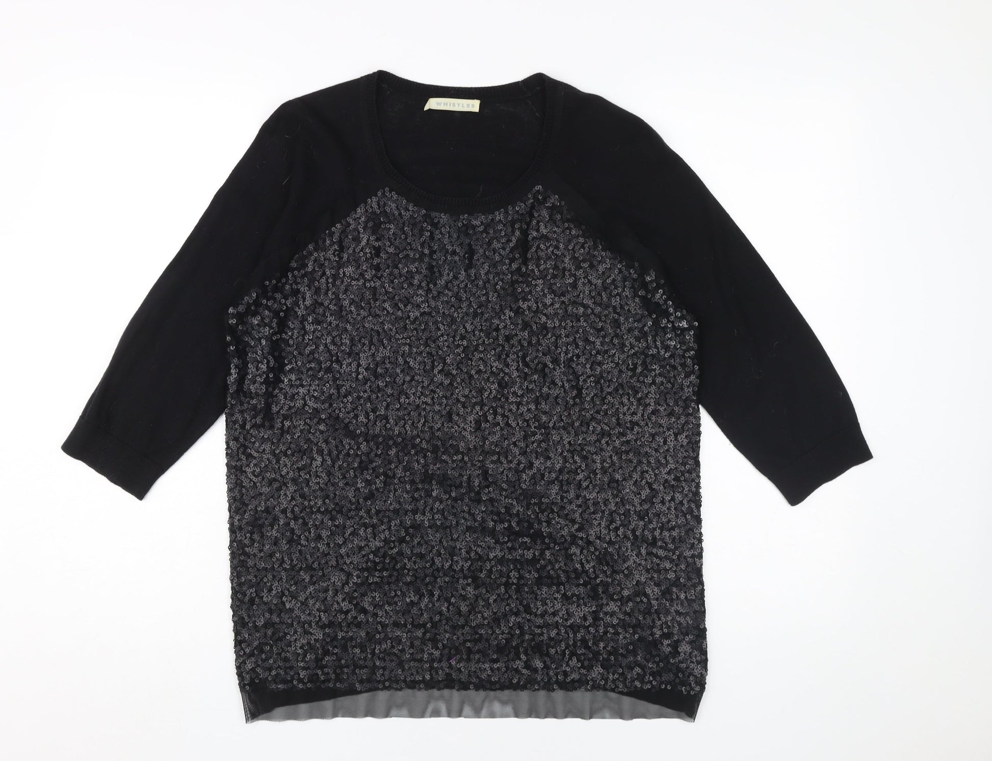 Whistles Women's Black Sequin Blouse 3/4 Sleeve
