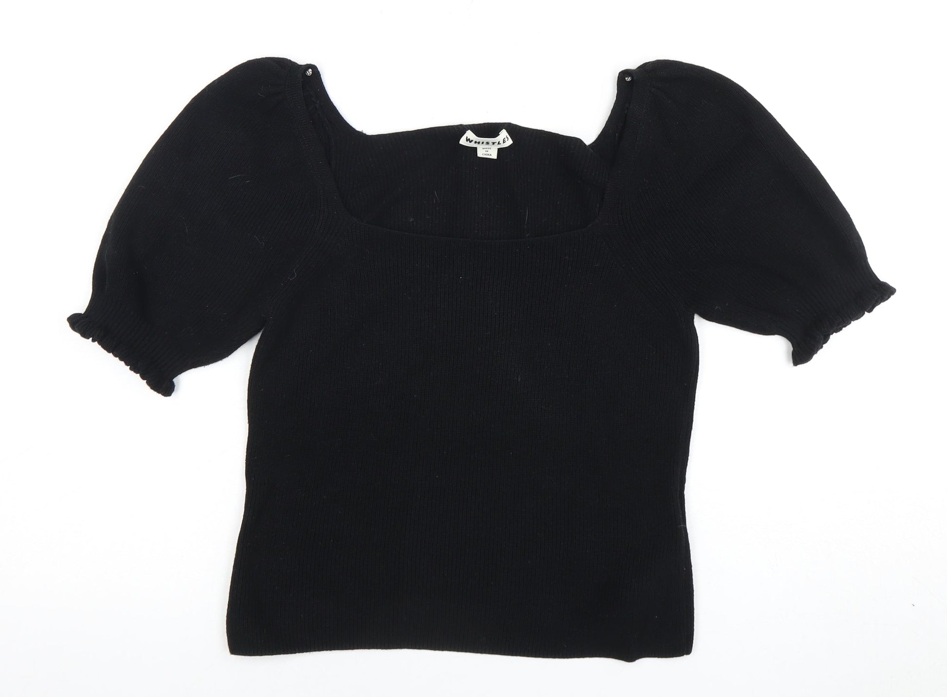 Whistles Women's Black Square Neck Puff Sleeve Blouse S