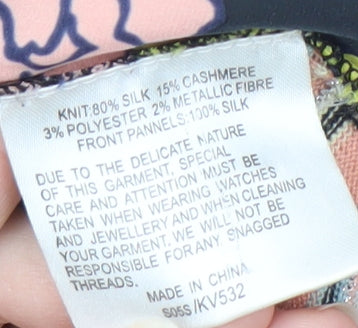 - Material Breakdown: 80% Silk 15% Cashmere 3% Polyester 2% Metallic Fibre