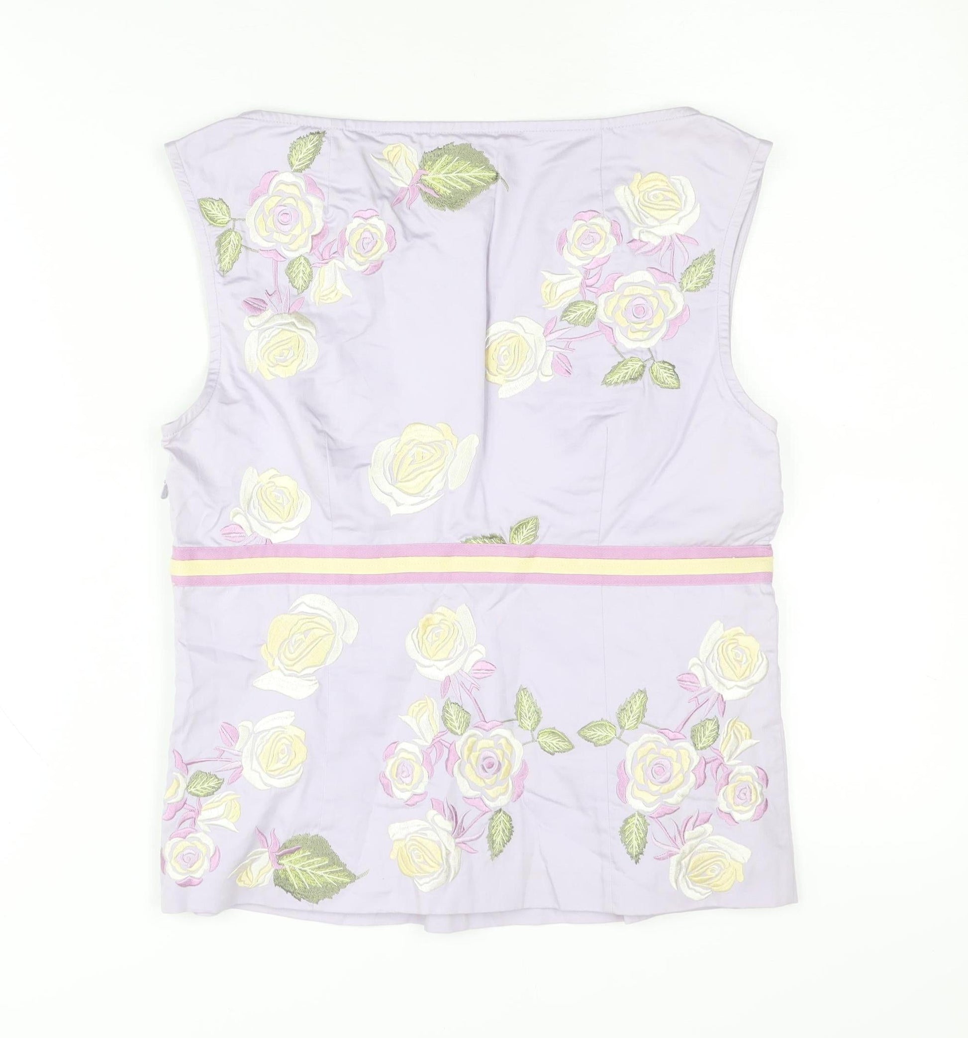Whistles Women's Purple Embroidered Sleeveless Top Size 10