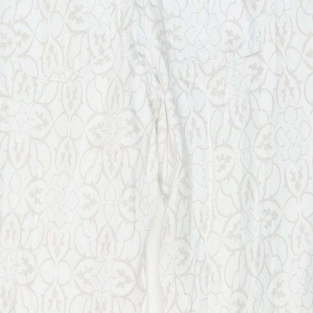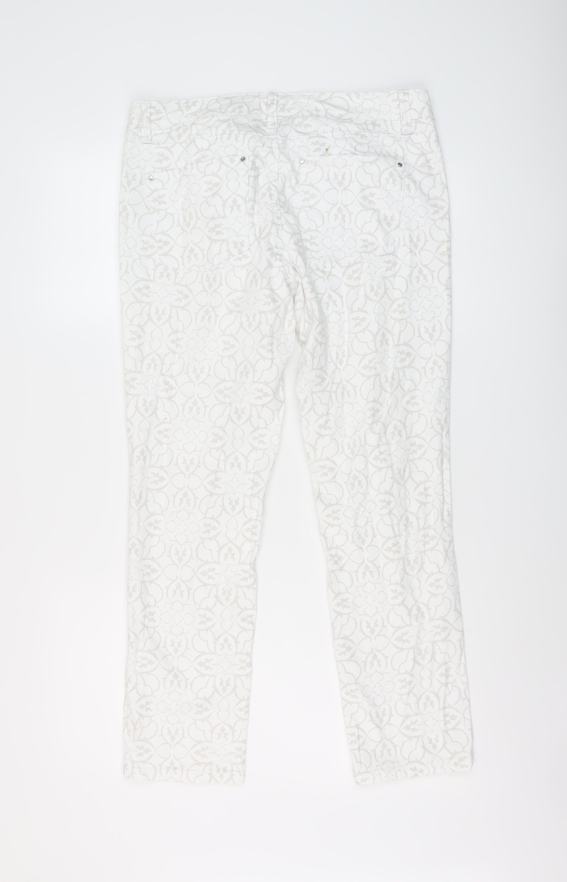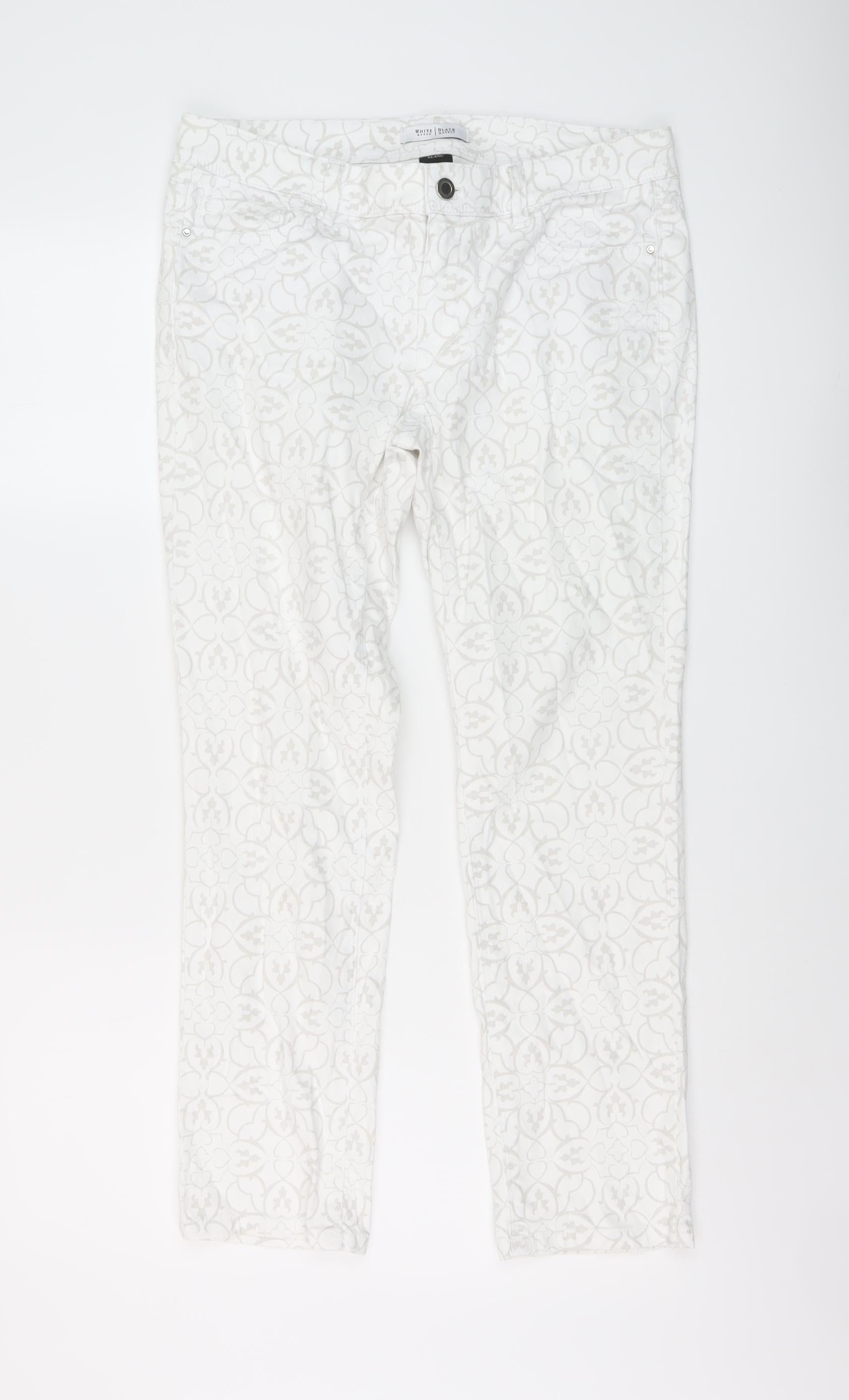 White House Black Market Womens White Geometric Cotton Straight Jeans Size 6 L26 in Regular Button
