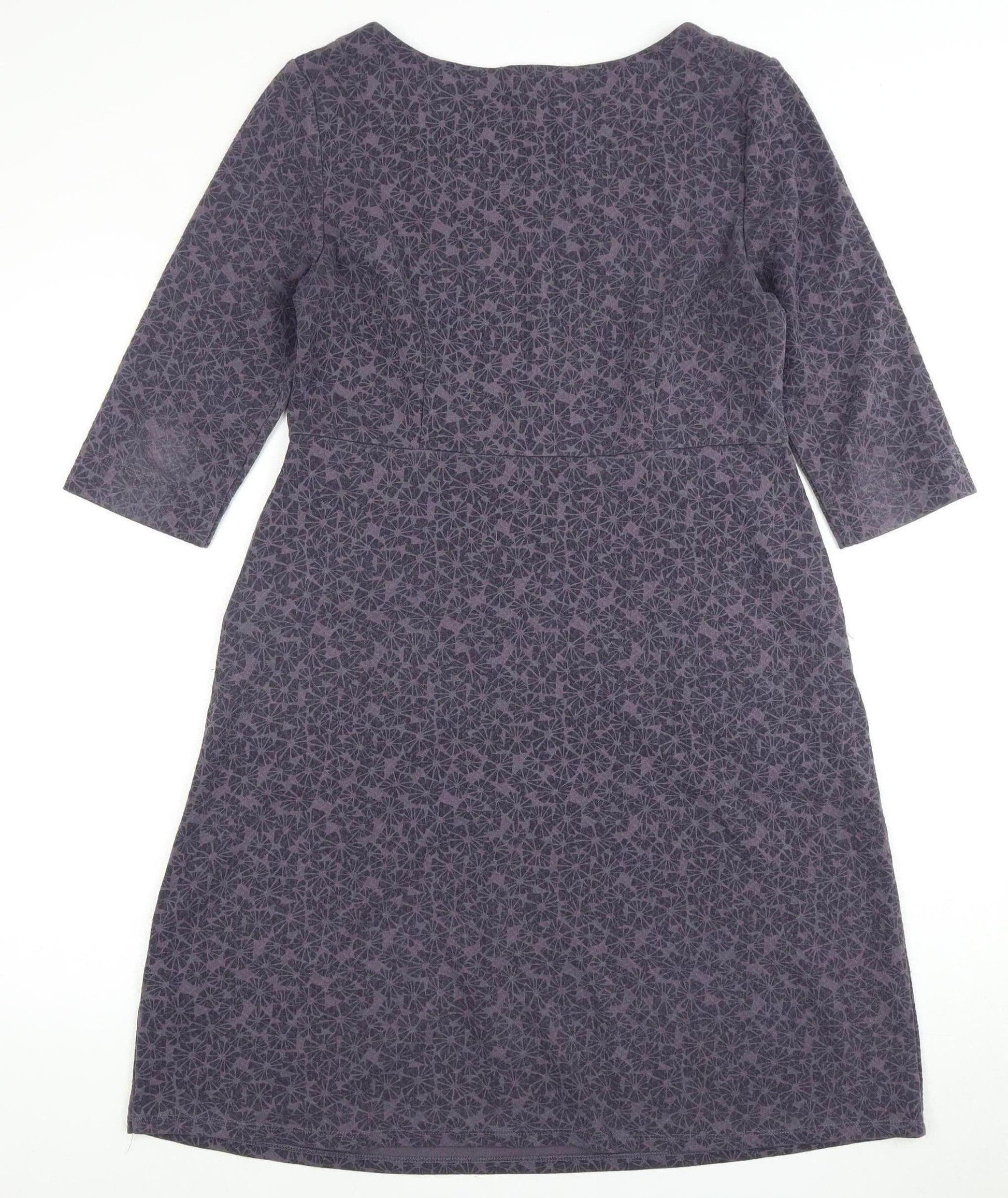 White Stuff Grey Geometric 3/4 Sleeve Women's Dress Size 12