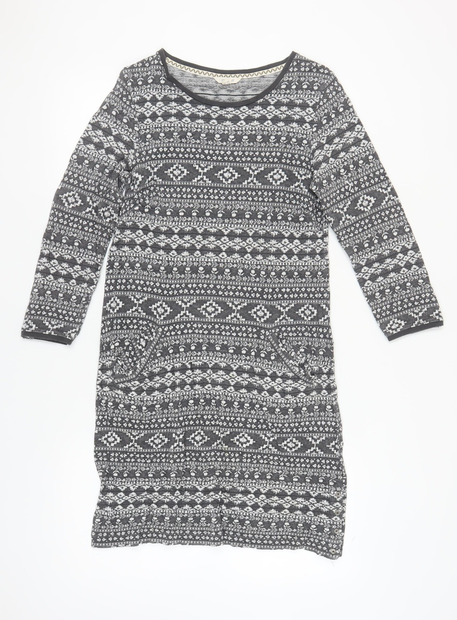White Stuff Grey Geometric Jumper Dress, Size 12, Long Sleeves