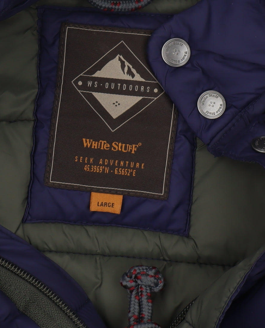 White Stuff Men's Blue Puffer Jacket - L, Casual Winter Wear