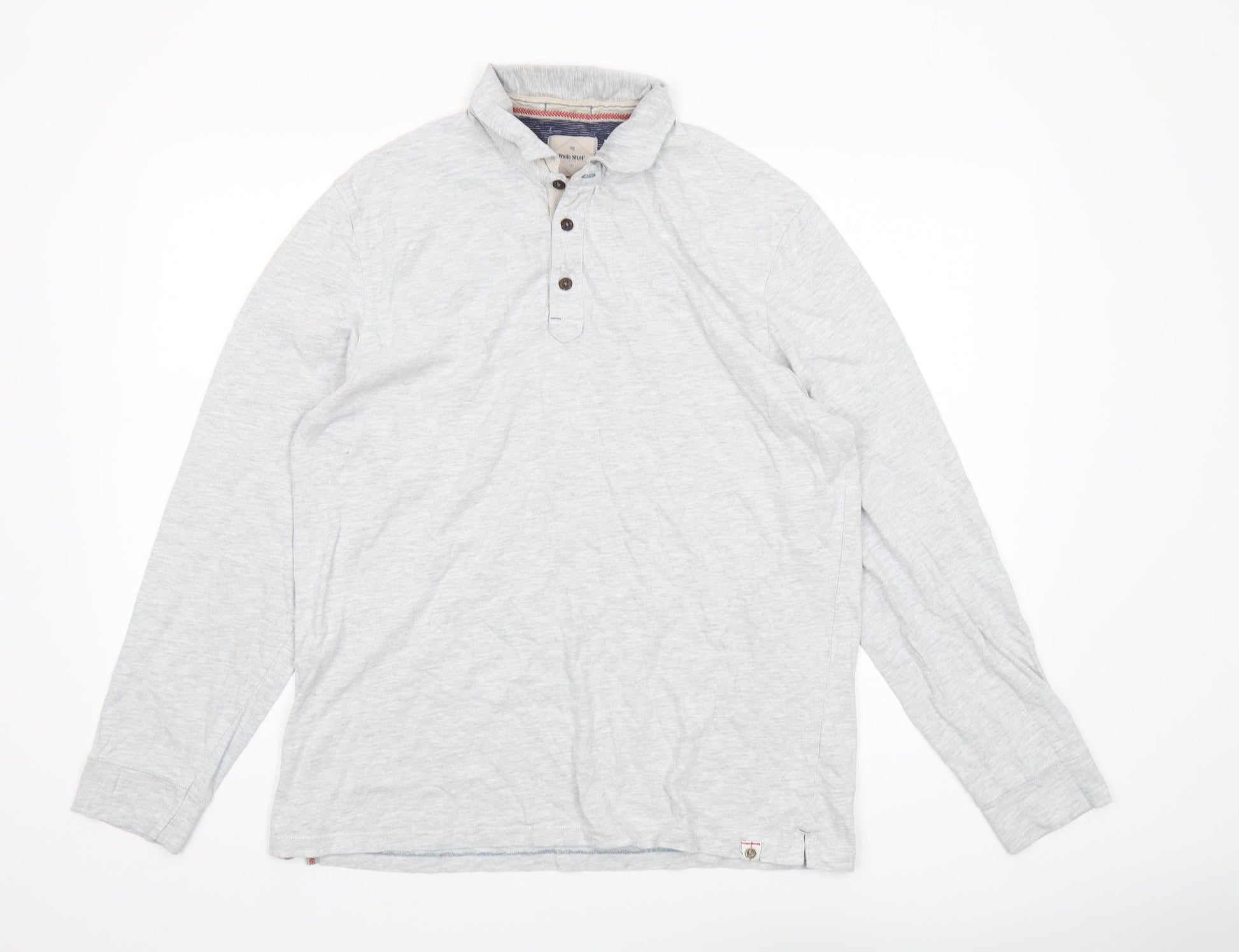 White Stuff Men's Grey Long Sleeve Polo Shirt L