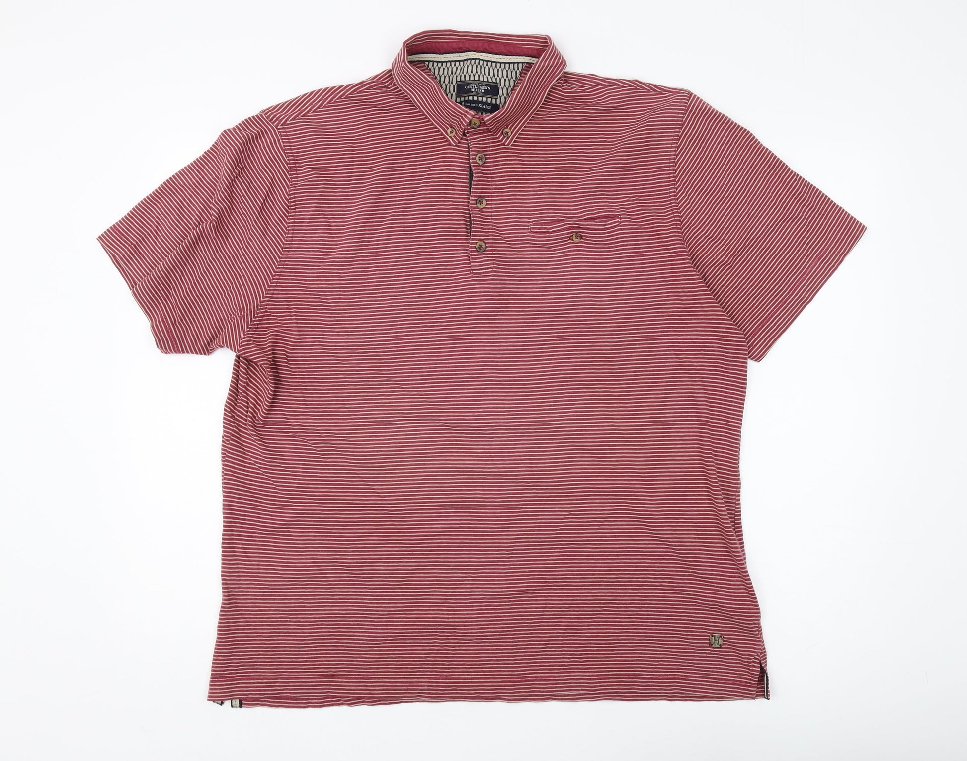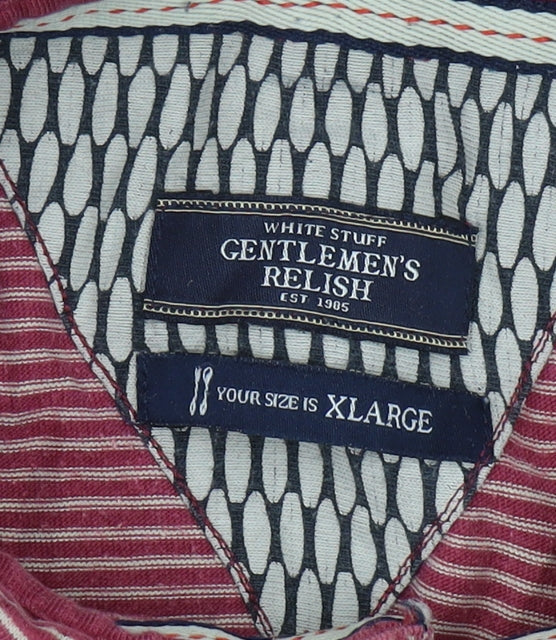 White Stuff Men's Red Striped XL Collared Polo Shirt