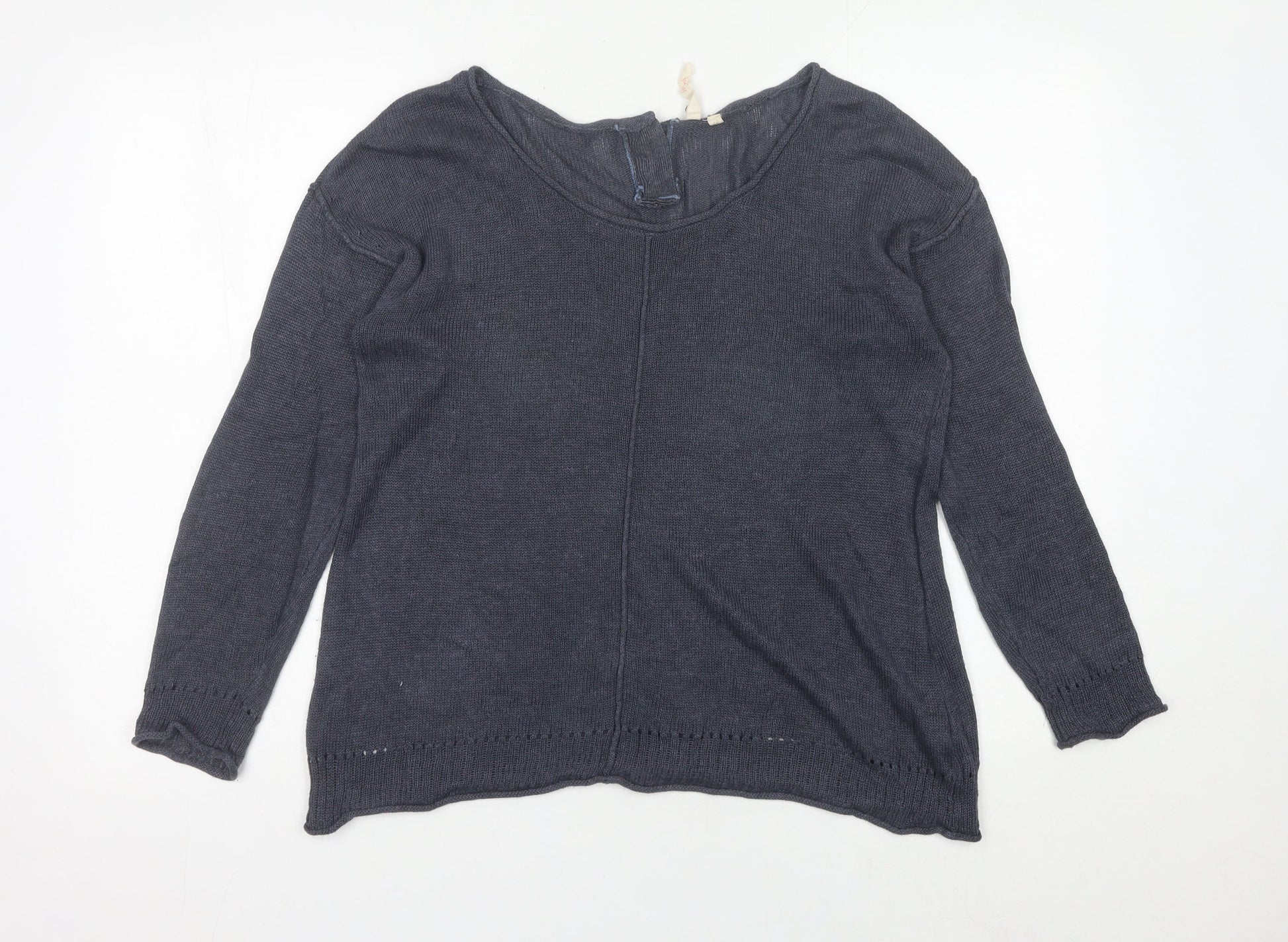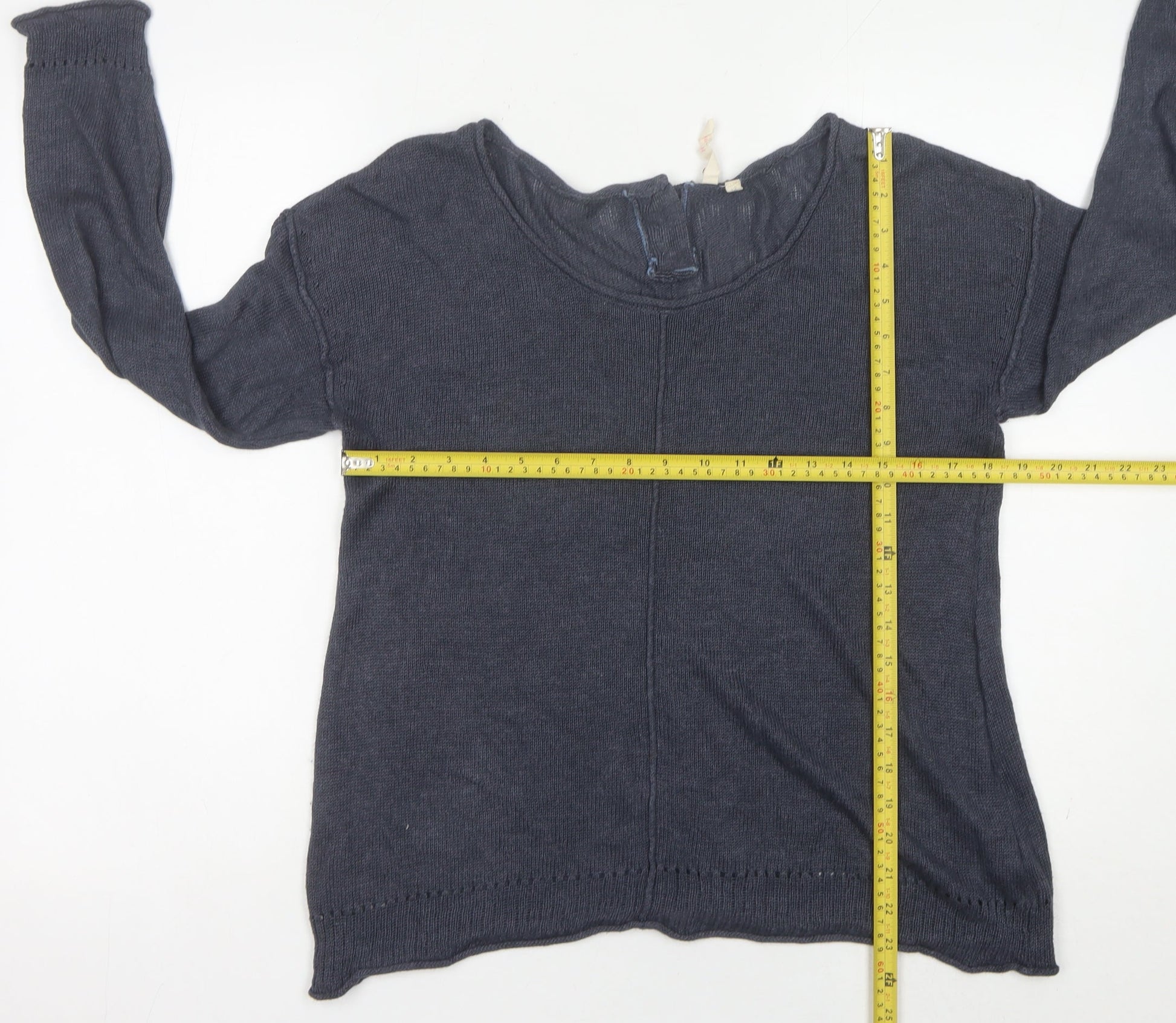 White Stuff Women Grey Linen Blend Scoop Neck Jumper Size 12